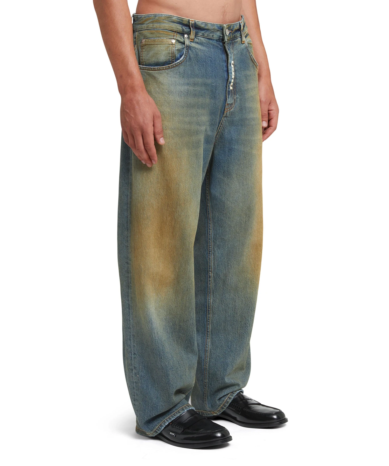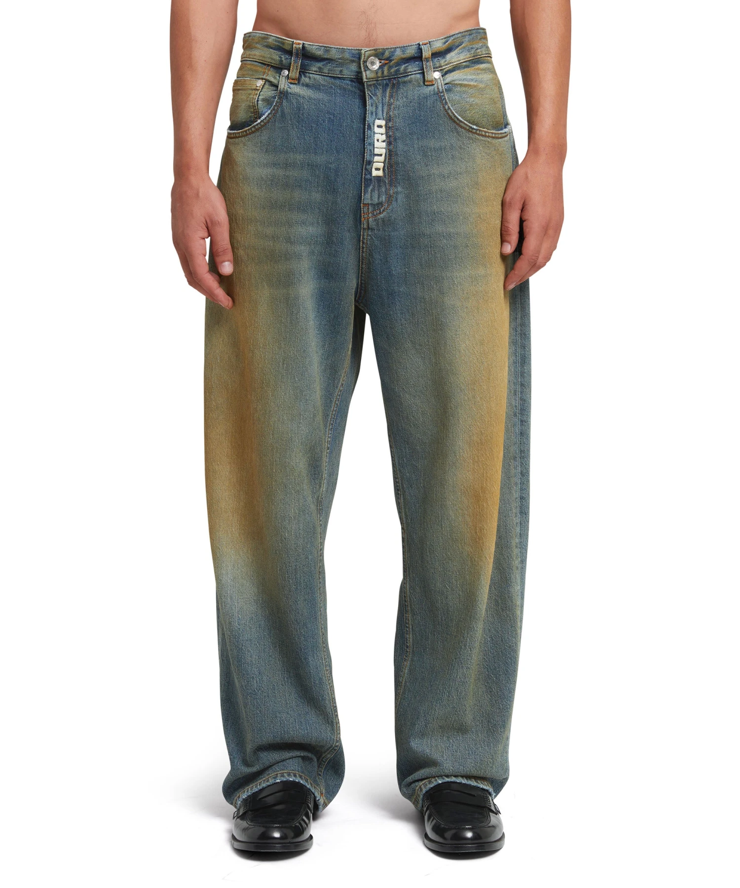 Roomy-leg denim pants with burned effect. 5-pocket model with “Duro” collection quotes embroidered on the flap. MSGM logo stitched on the bottom rear. Oversize fit.