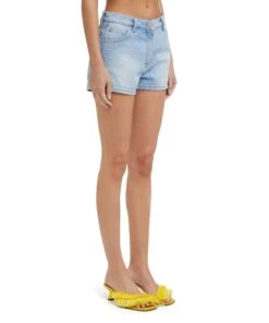 Light denim used effect shorts with contrasting MSGM embroidered on the side. Medium waist, belt loops and closure with button and hidden zipper. 5-pocket model. Regular fit.