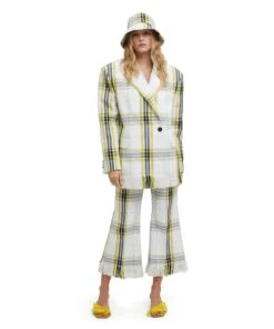 Be the first to review “Asymmetrically Buttoned Jacket In Tecno Canvas Check” Cancel reply