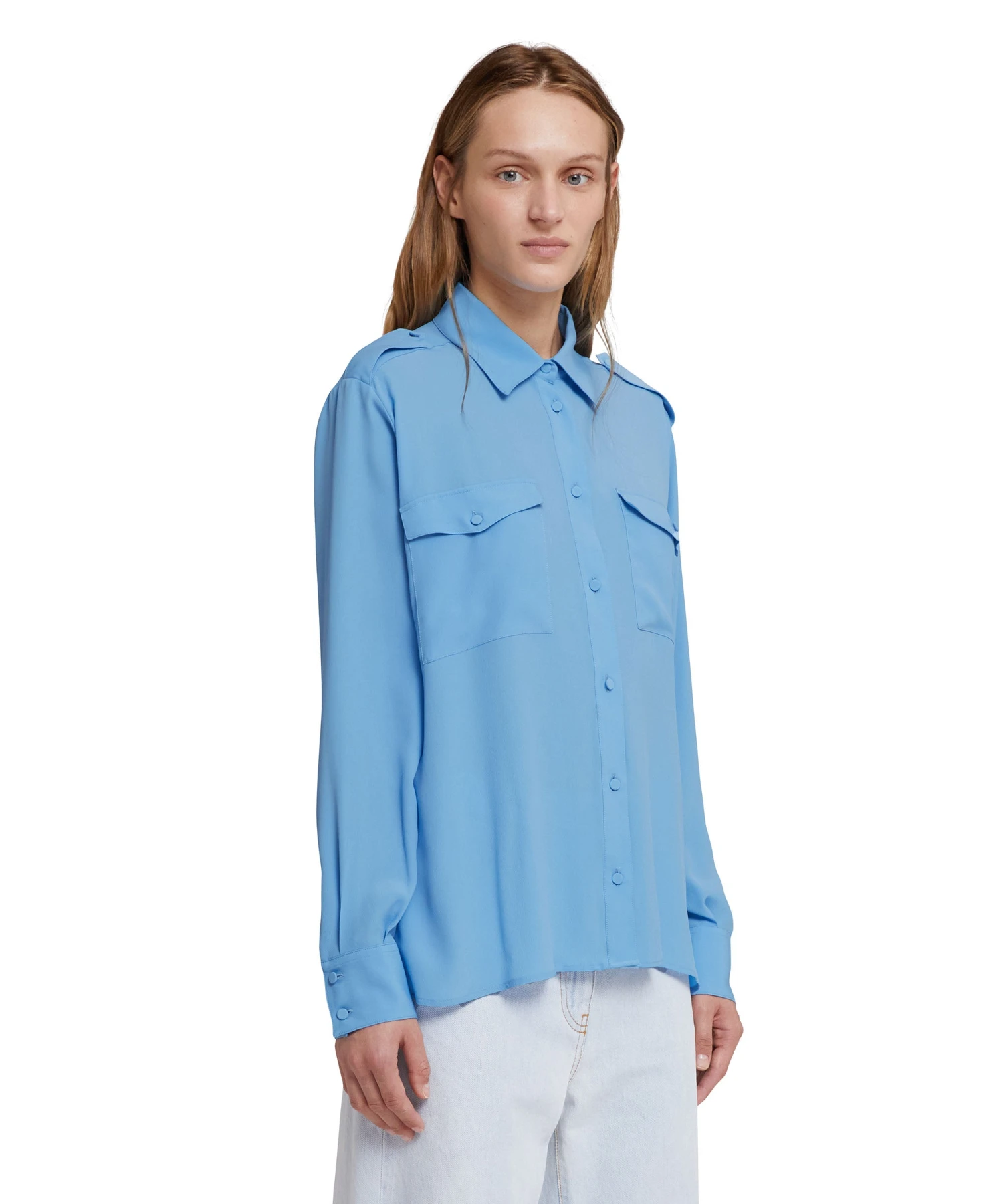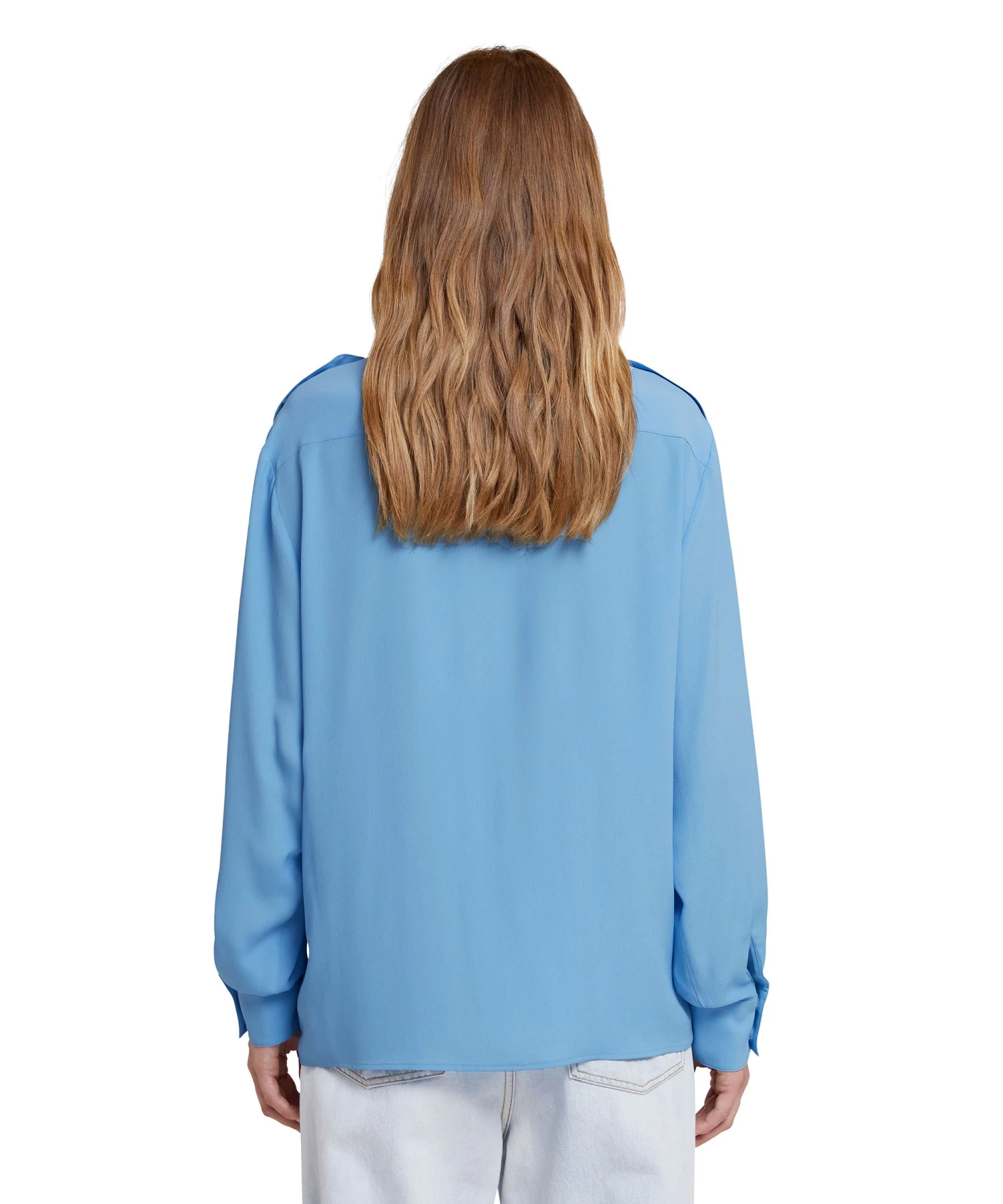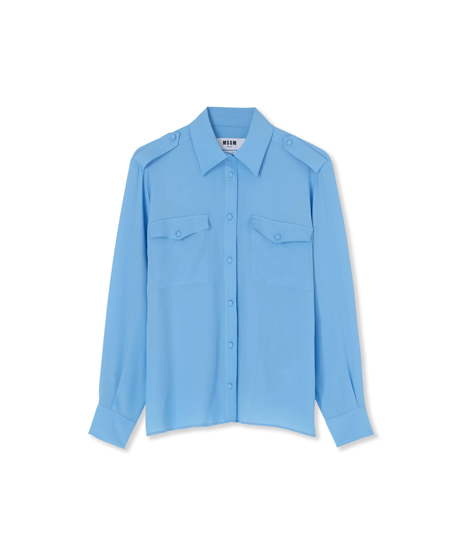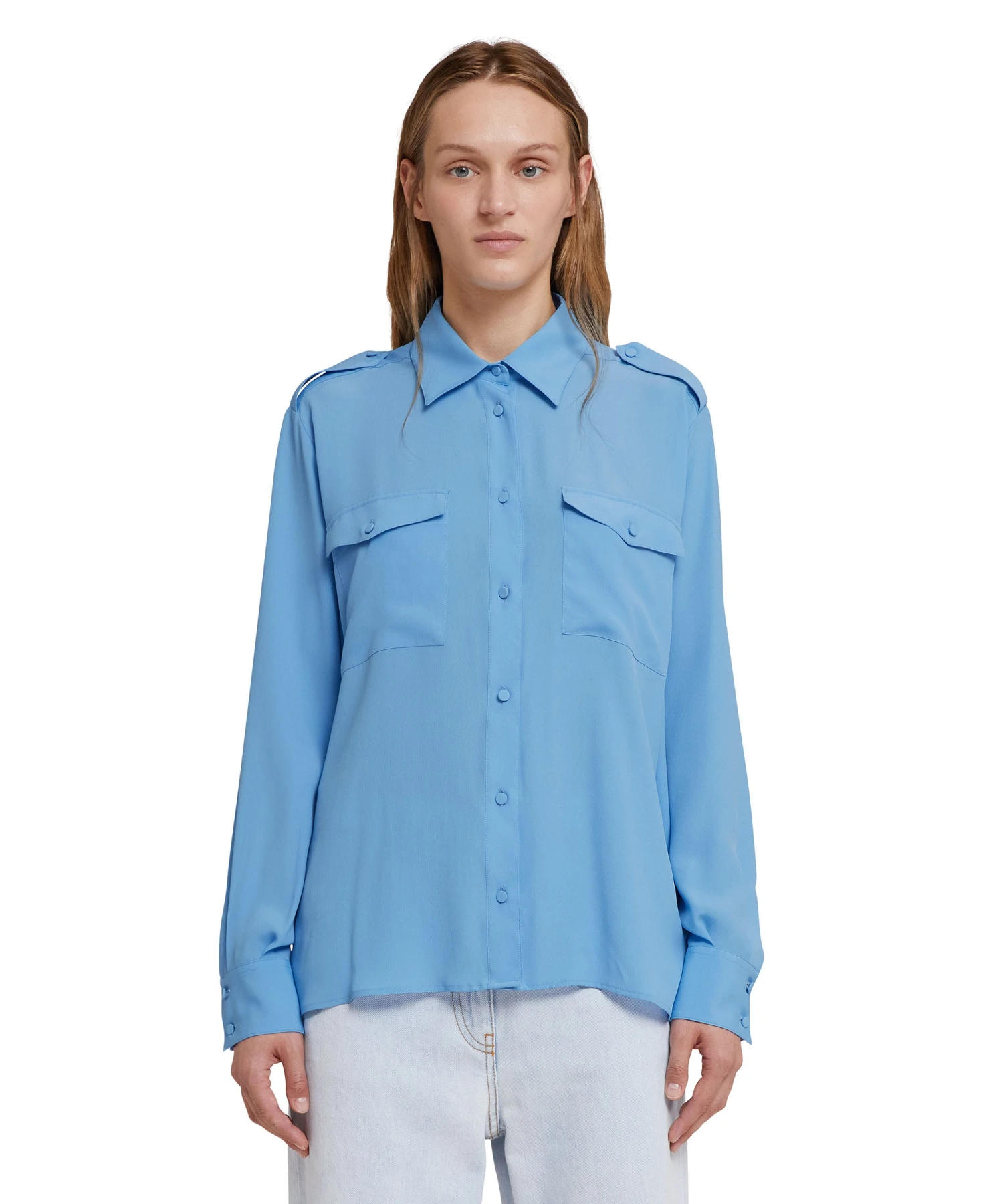 Crepe de chine silk blend long-sleeve shirt. Flapped pockets with buttons. Epaulets on the shoulders. Closure with visible buttons. Regular fit.