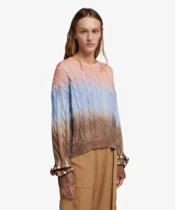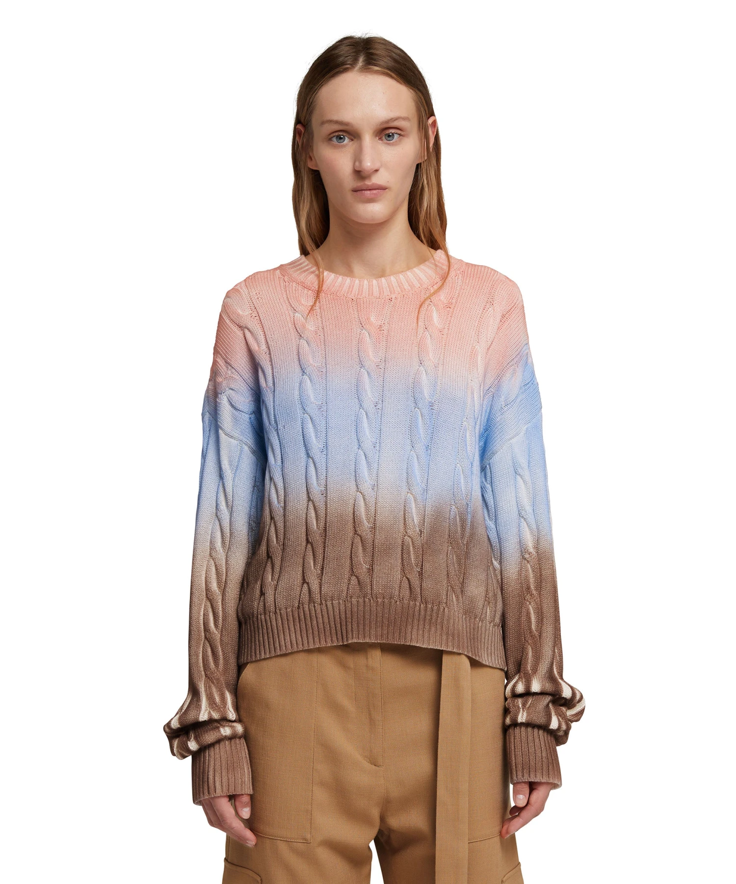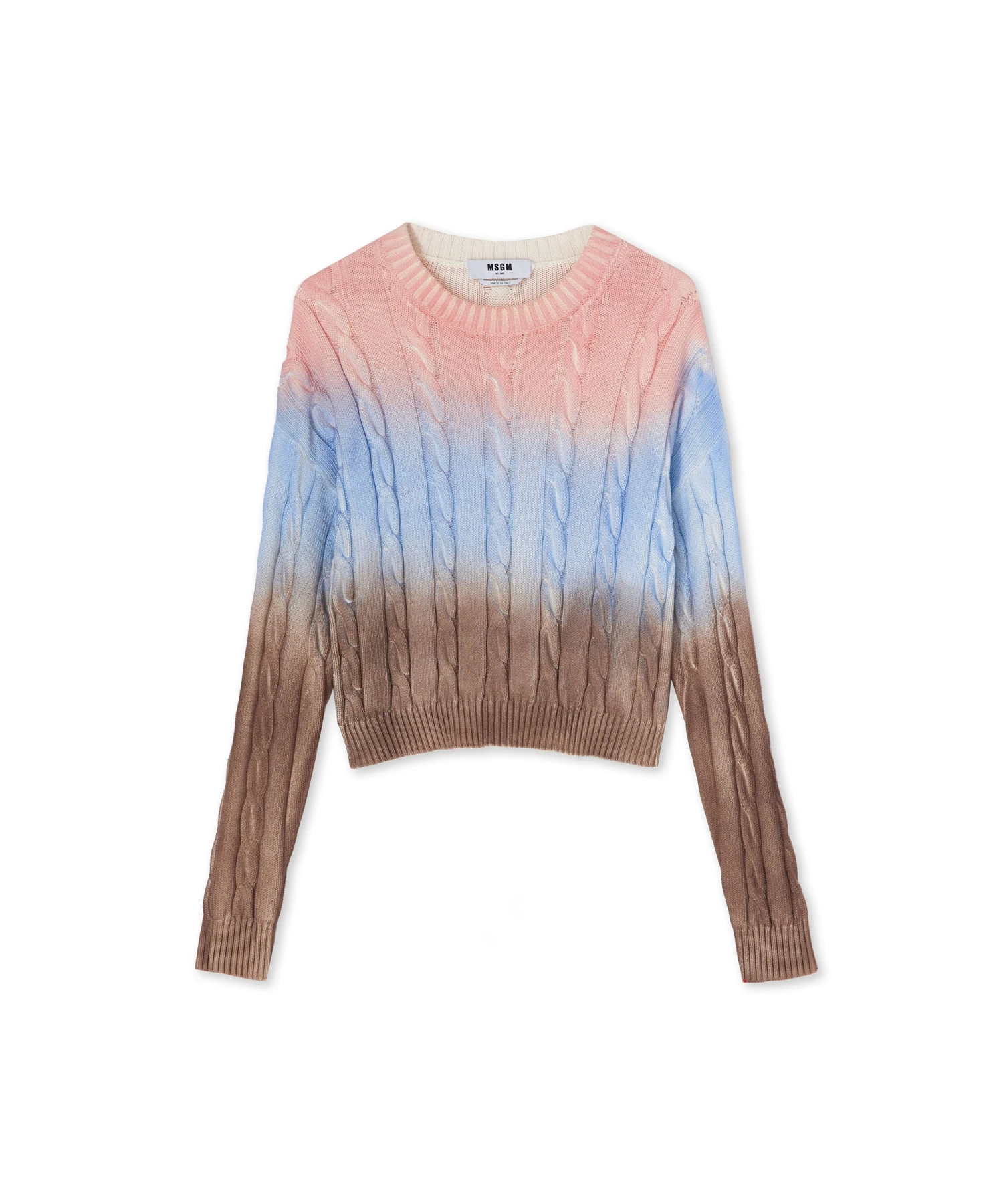 Cotton crewneck shirt with cable knit and faded treatment. Ribbed collar, cuffs and bottom. Oversize fit.