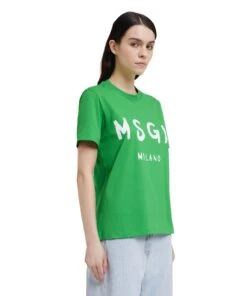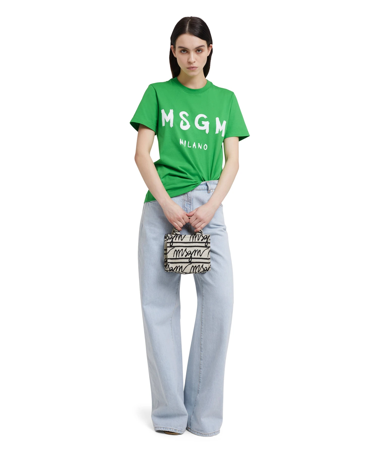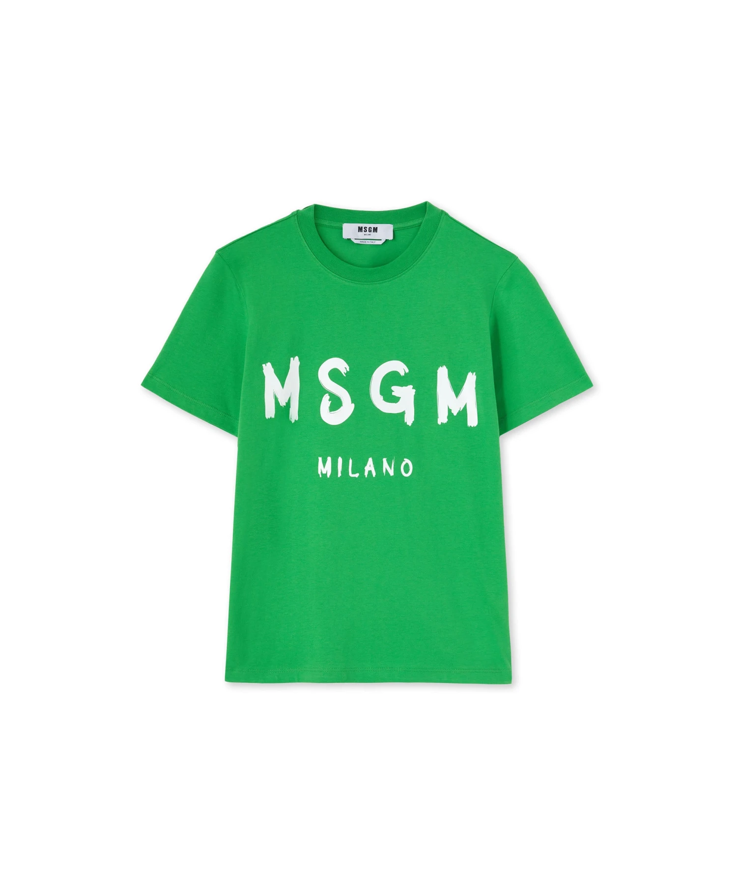 Solid color cotton crewneck t-shirt with contrasting graphic brushstroke logo. Regular fit.