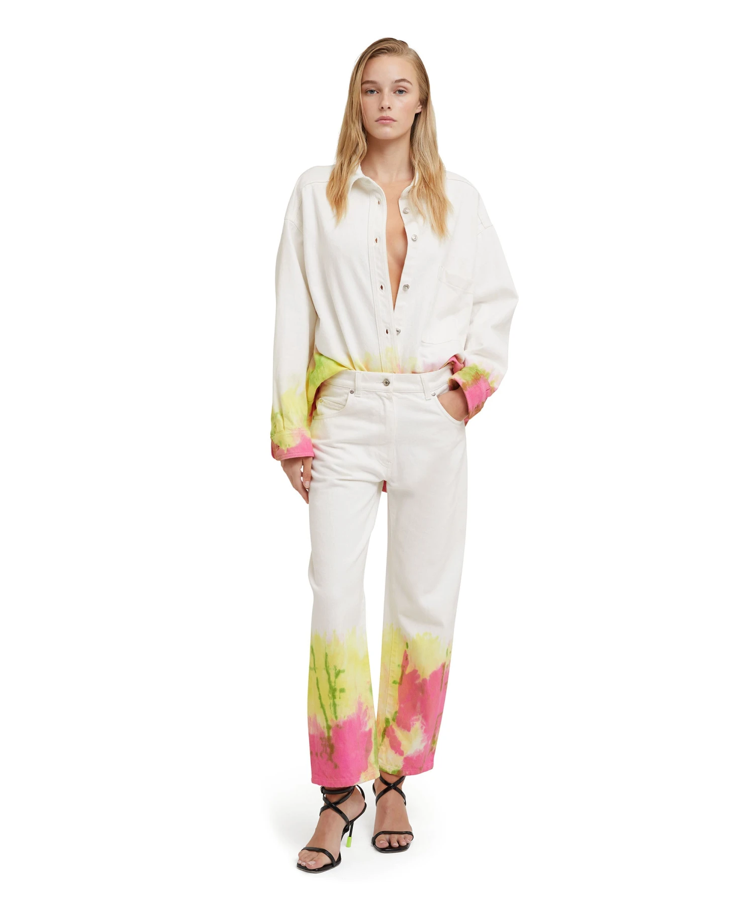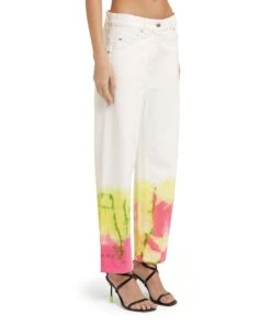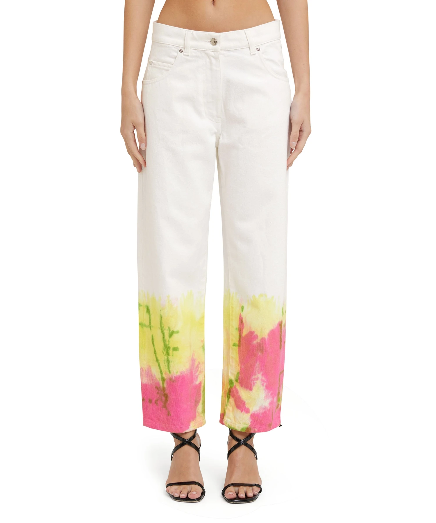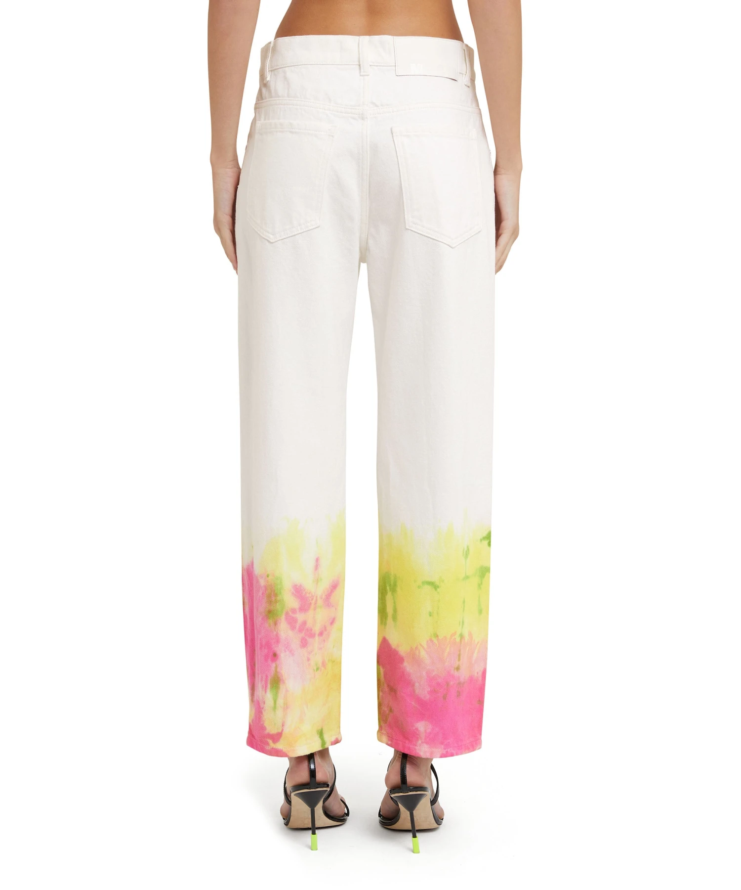 Bull cotton cropped pants with tie-dye treatment. Medium waist, belt loops and closure with button and hidden zipper. 5-pocket model. Regular fit.