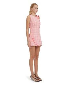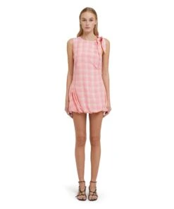 Short sleeveless dress in crepe di viscose check print with bow shoulder straps and draping at the bottom of the skirt. Rear zipper closure. Regular fit.