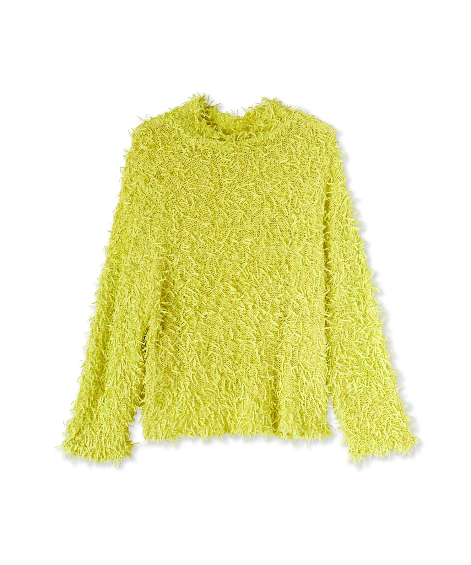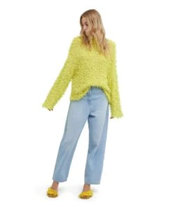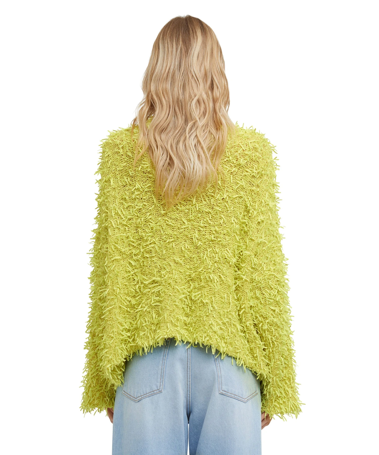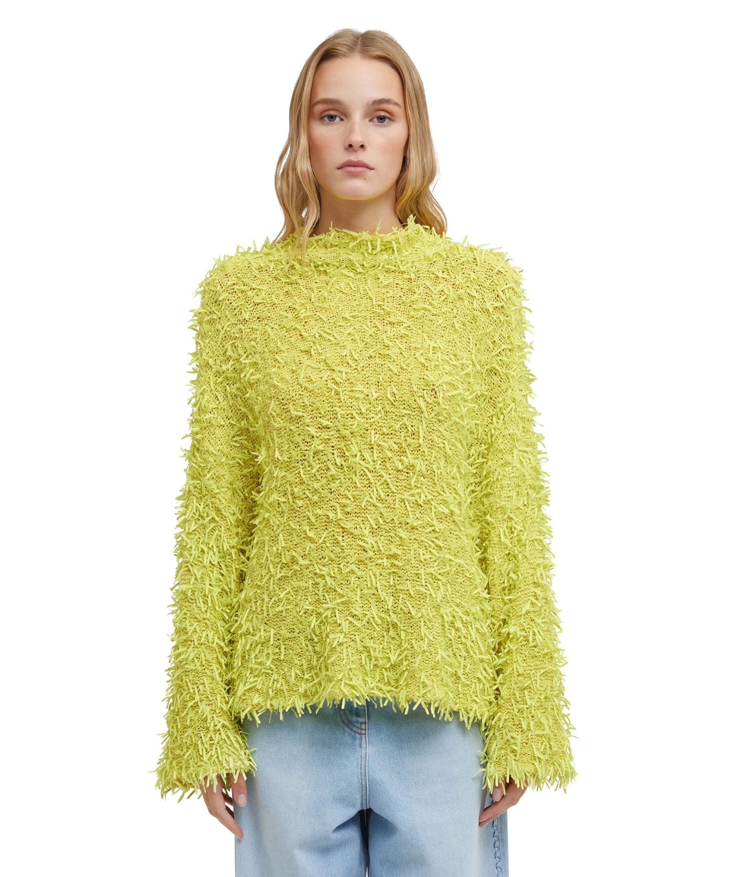 Solid color cotton ribbon sweater with frayed effect. Regular fit.