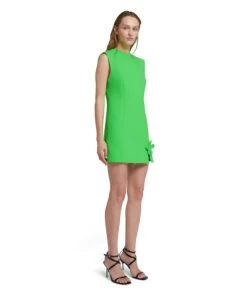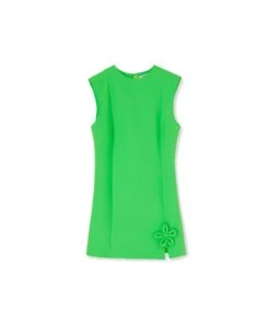 Double crepe cady sheath dress with flower embroidered on a small slit on the front hem. Sleeveless model. Rear zipper closure. Raw hem. Regular fit.