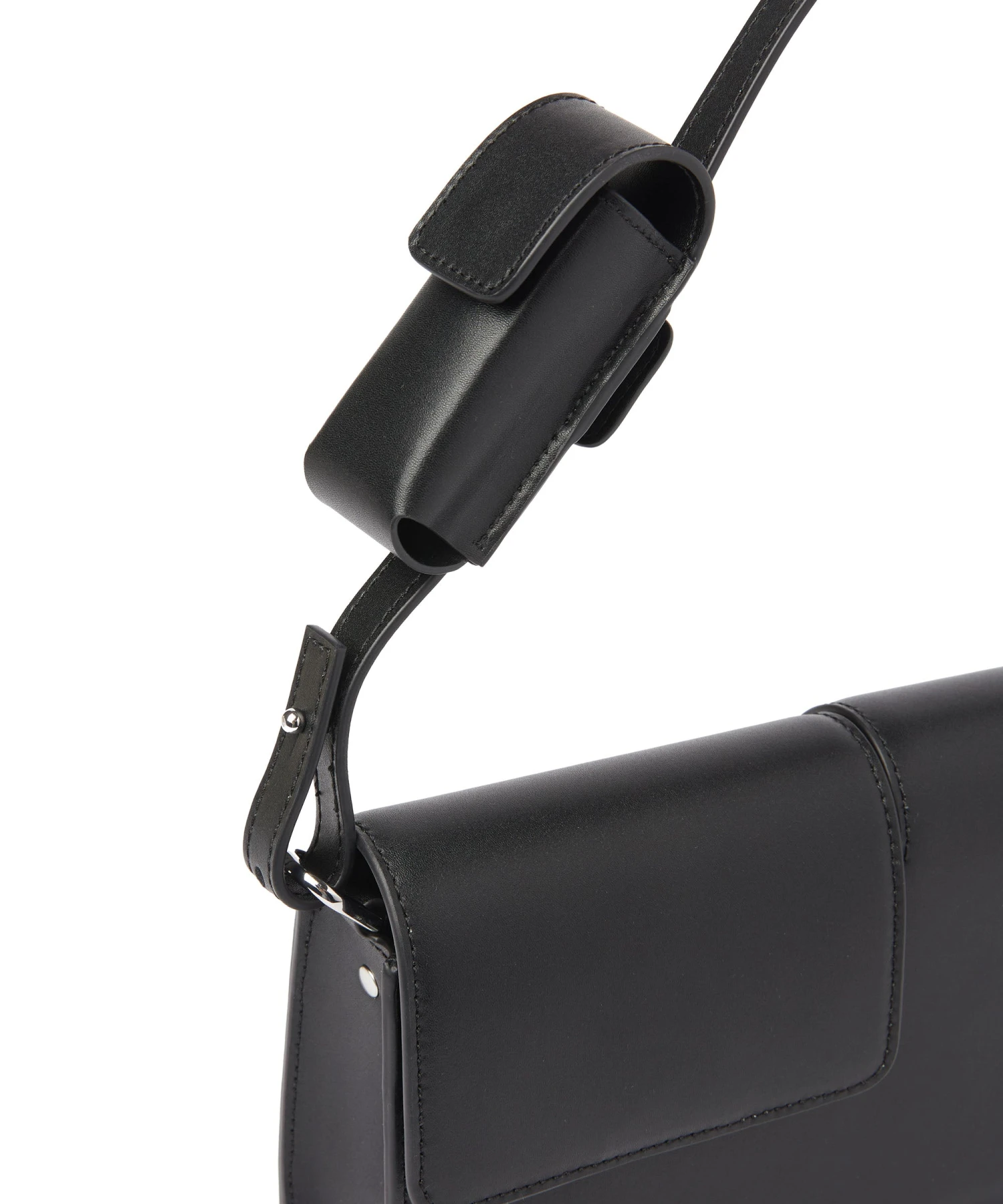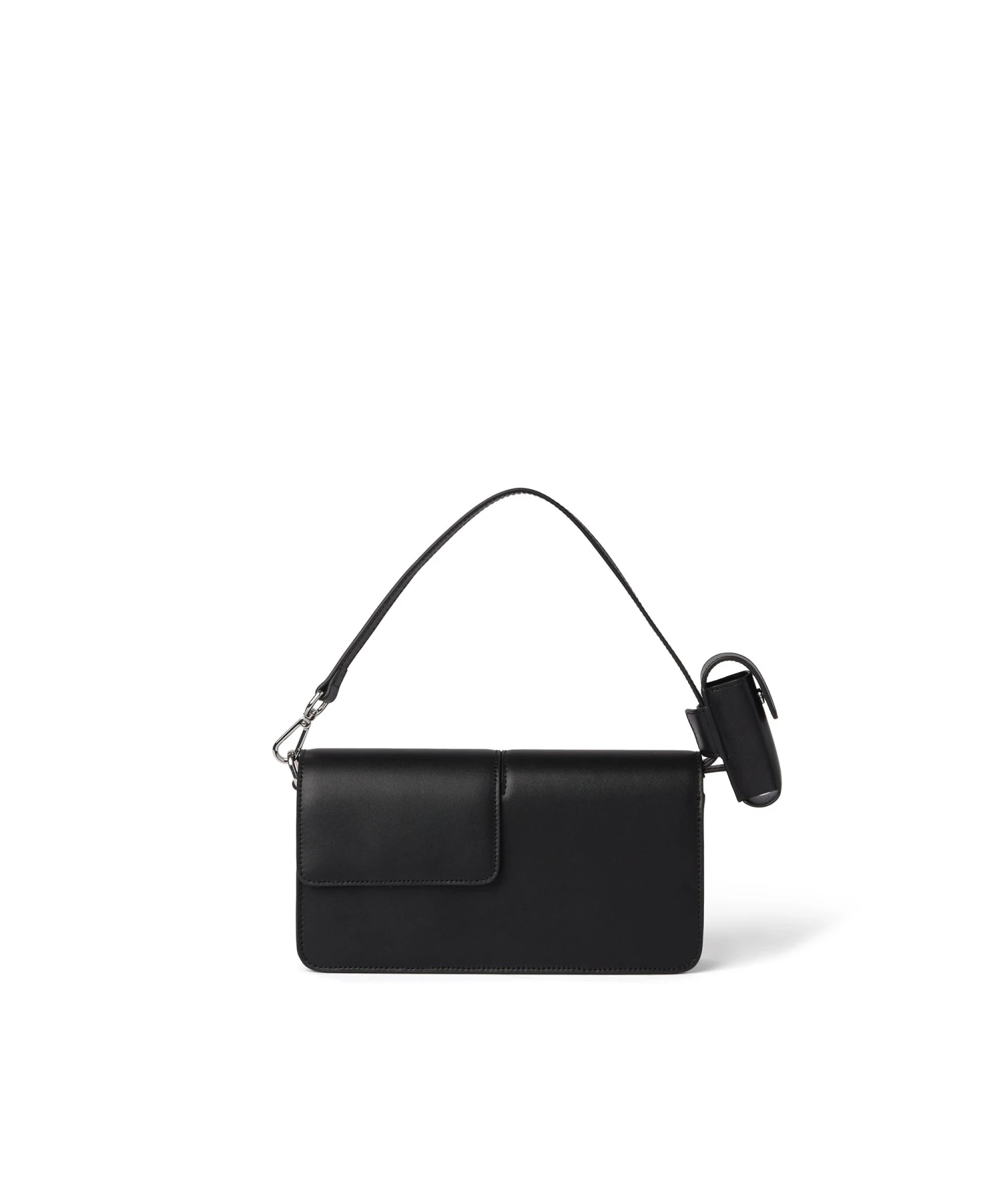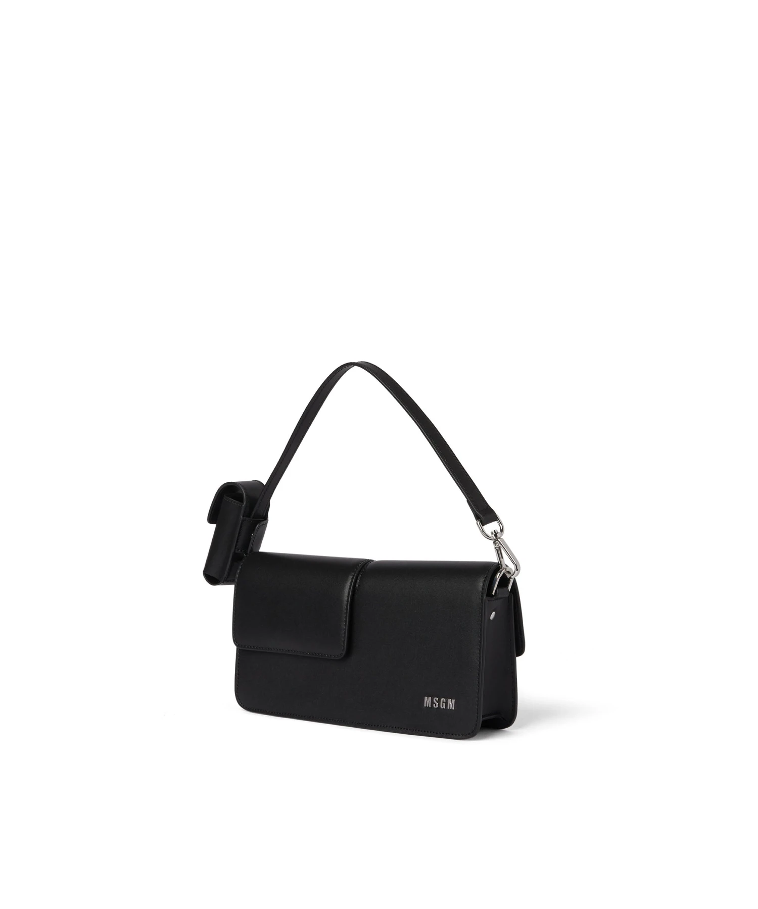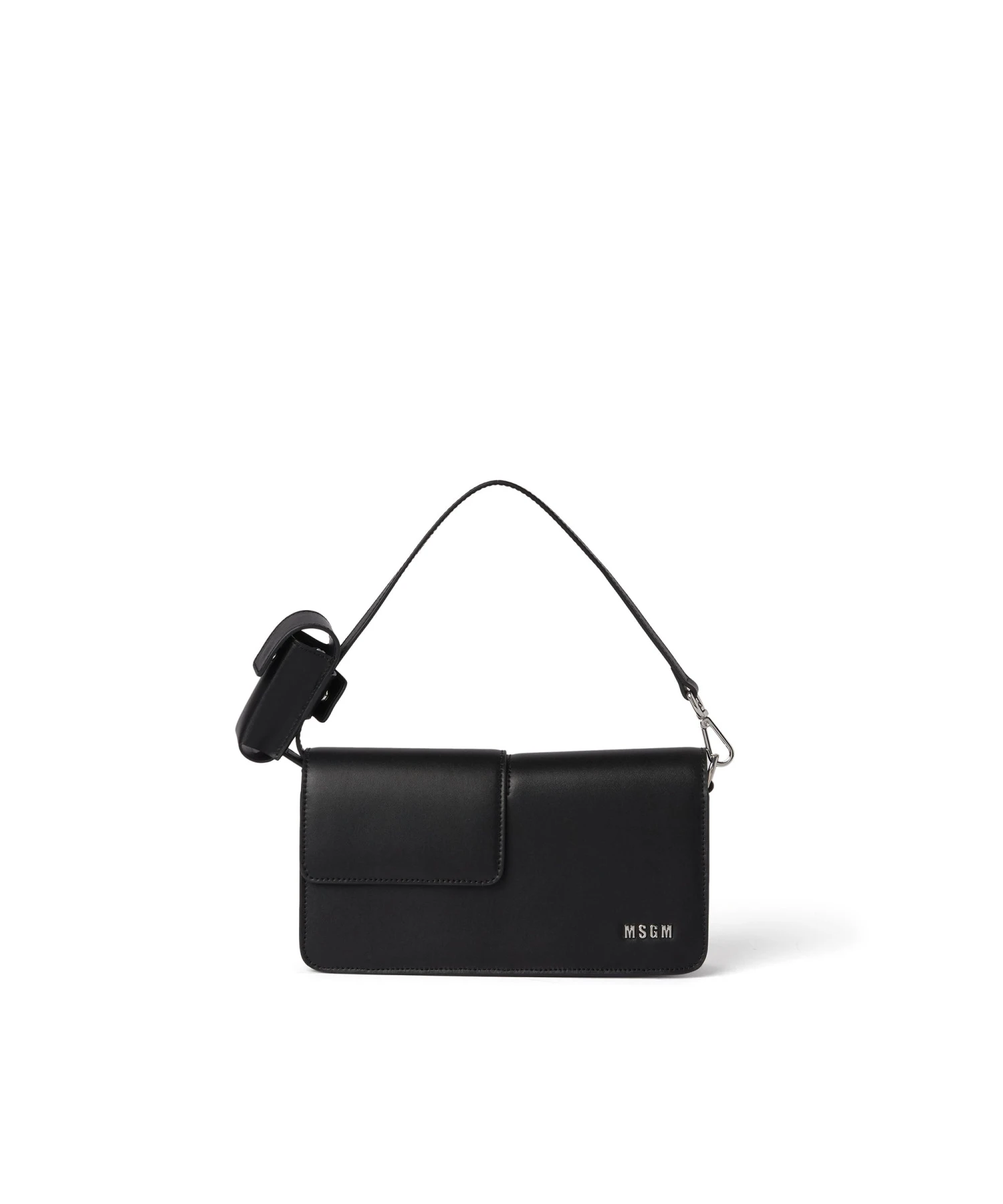 Leather baguette bag with double flap. Black lining and interior pocket in fluorescent yellow faux-leather with embossed logo. Magnetic closure and logo lettering in metal. Measurements: 24 x 12 x 5 cm / 9.4 x 4.7 x 2 inches