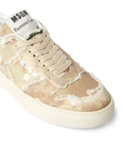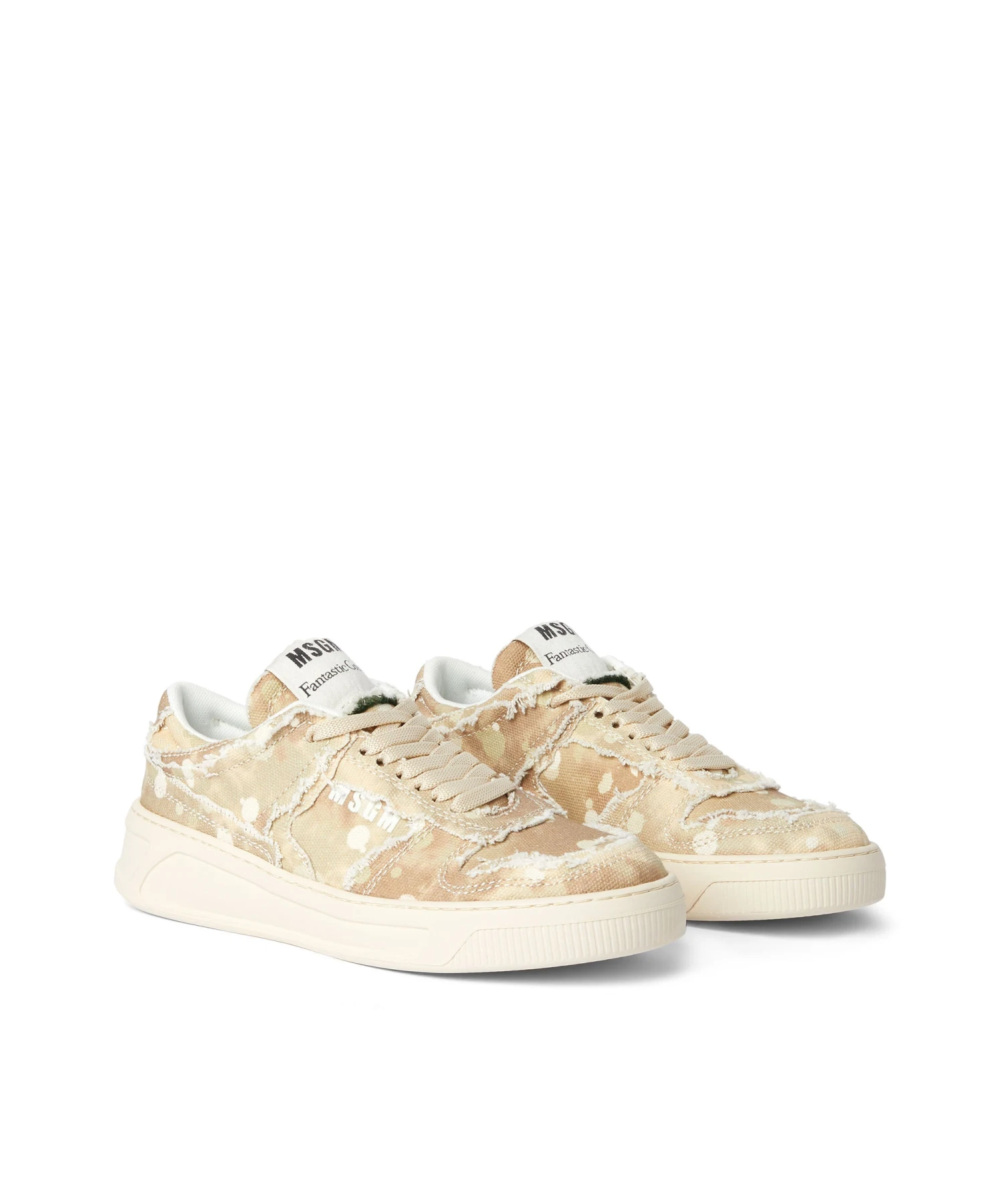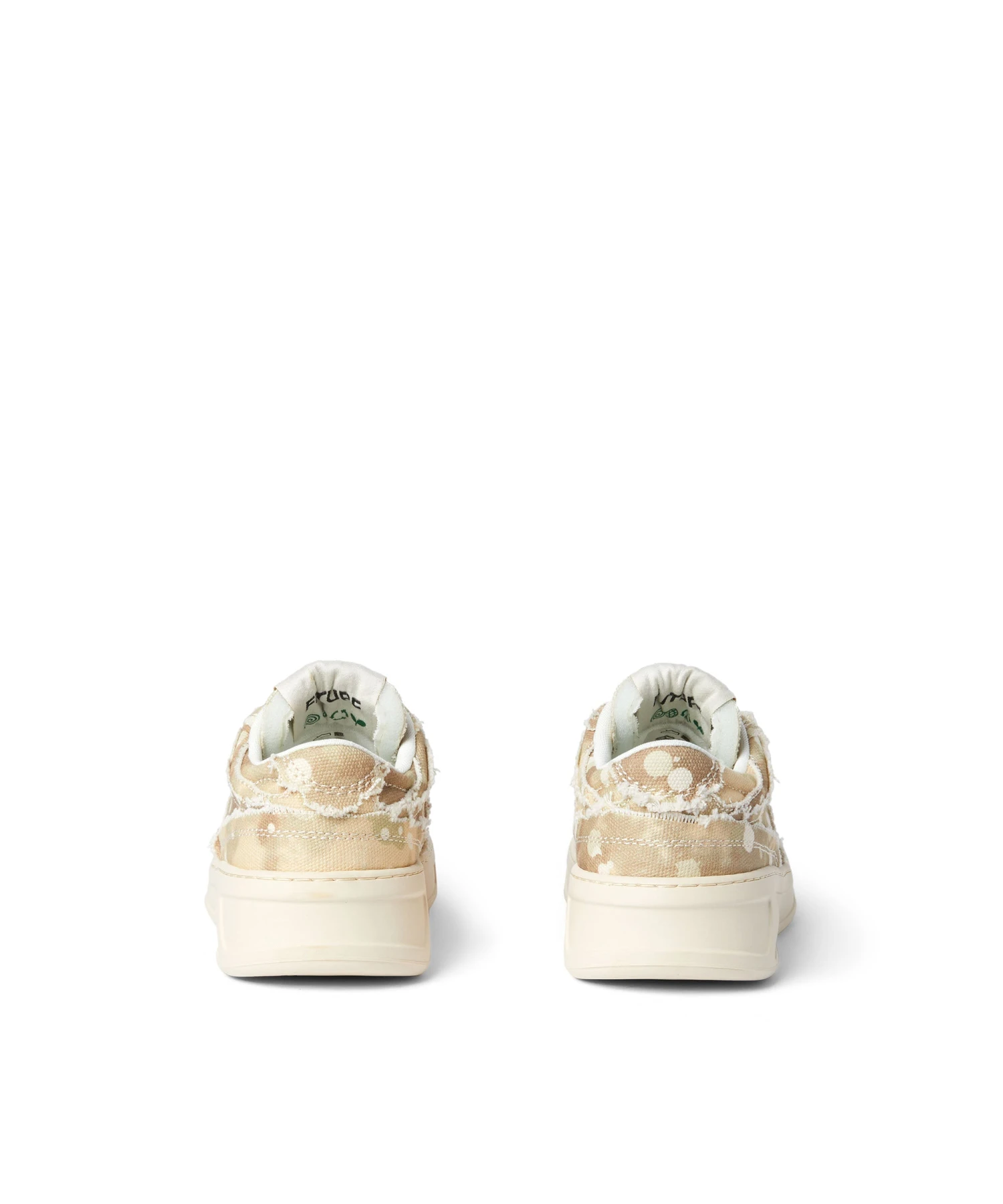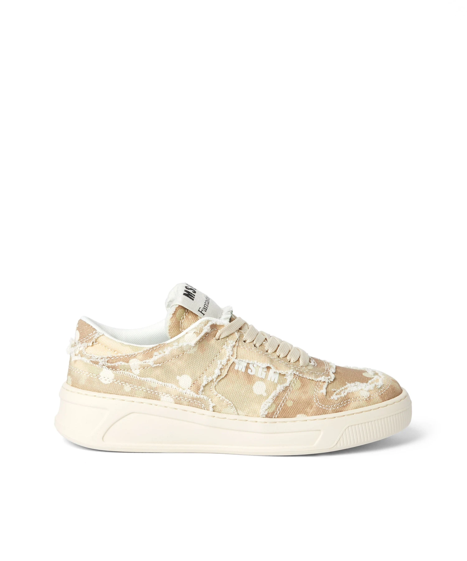 Canvas print sneakers with white box sole. Flat laces and fringed fabric label. Logo printed on the side. Bottom height: 3.5 cm / 1.4 inches.