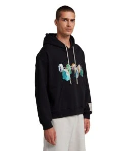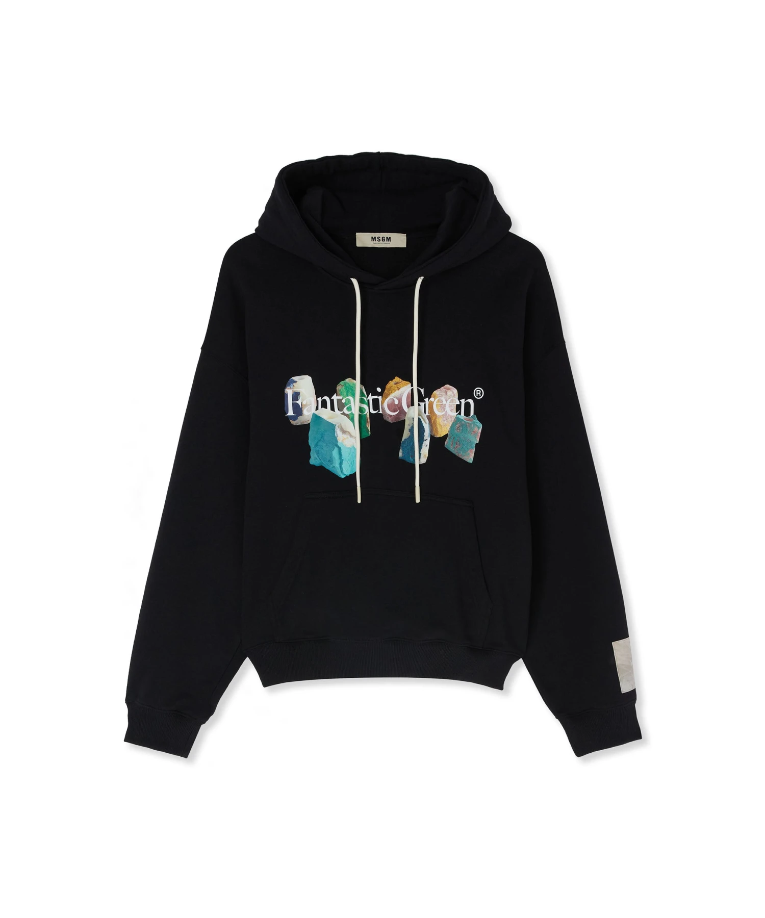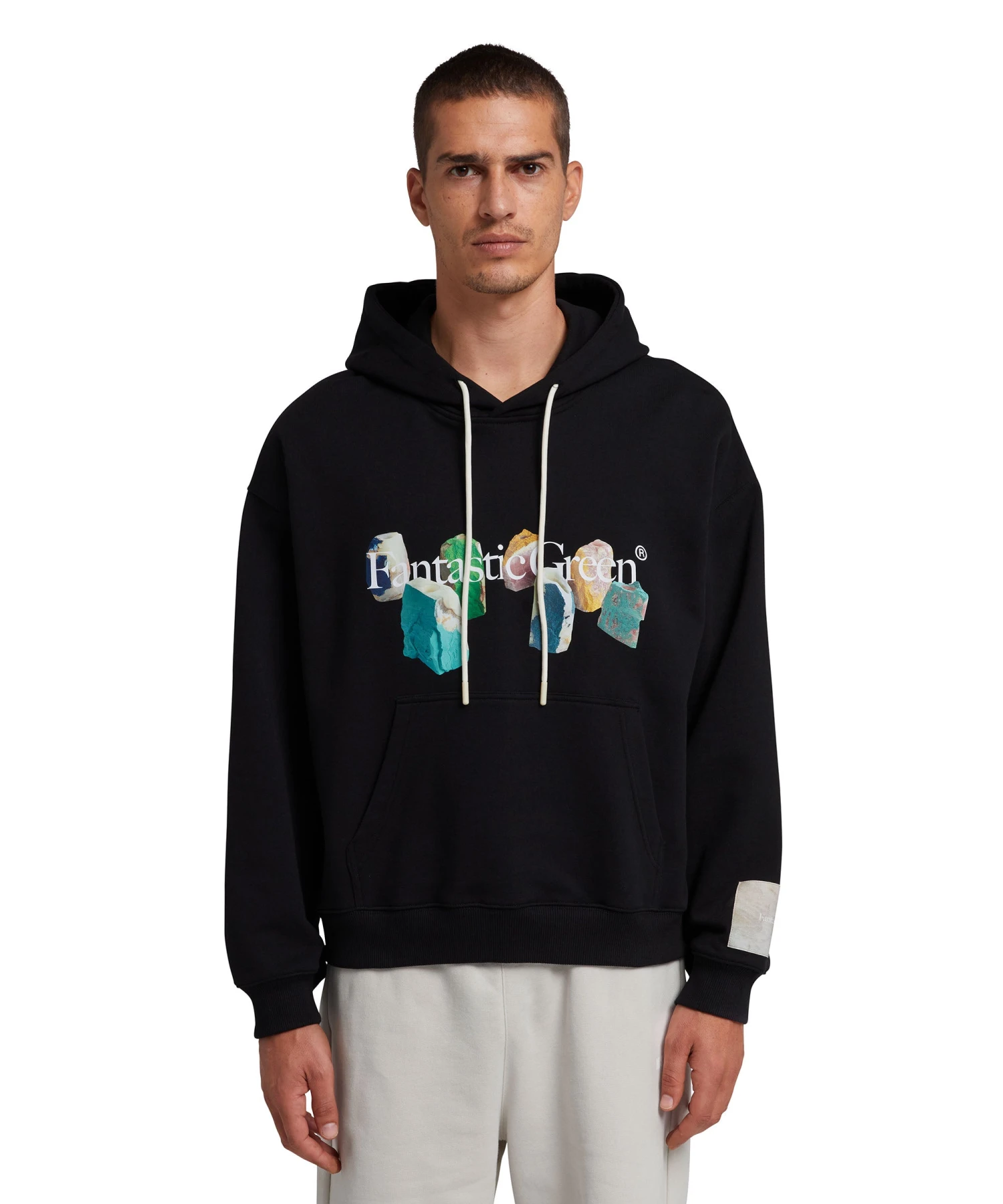 The Fantastic Green capsule for the Spring/Summer 24 season is developed in collaboration with the artist Duccio Maria Gambi and the works of his “L’inverse series” collection. Certified organic cotton hooded sweatshirt, made from entirely sustainable fabric, label from the collection applied to the sleeve and the work of the artist printed on the front. Regular fit.