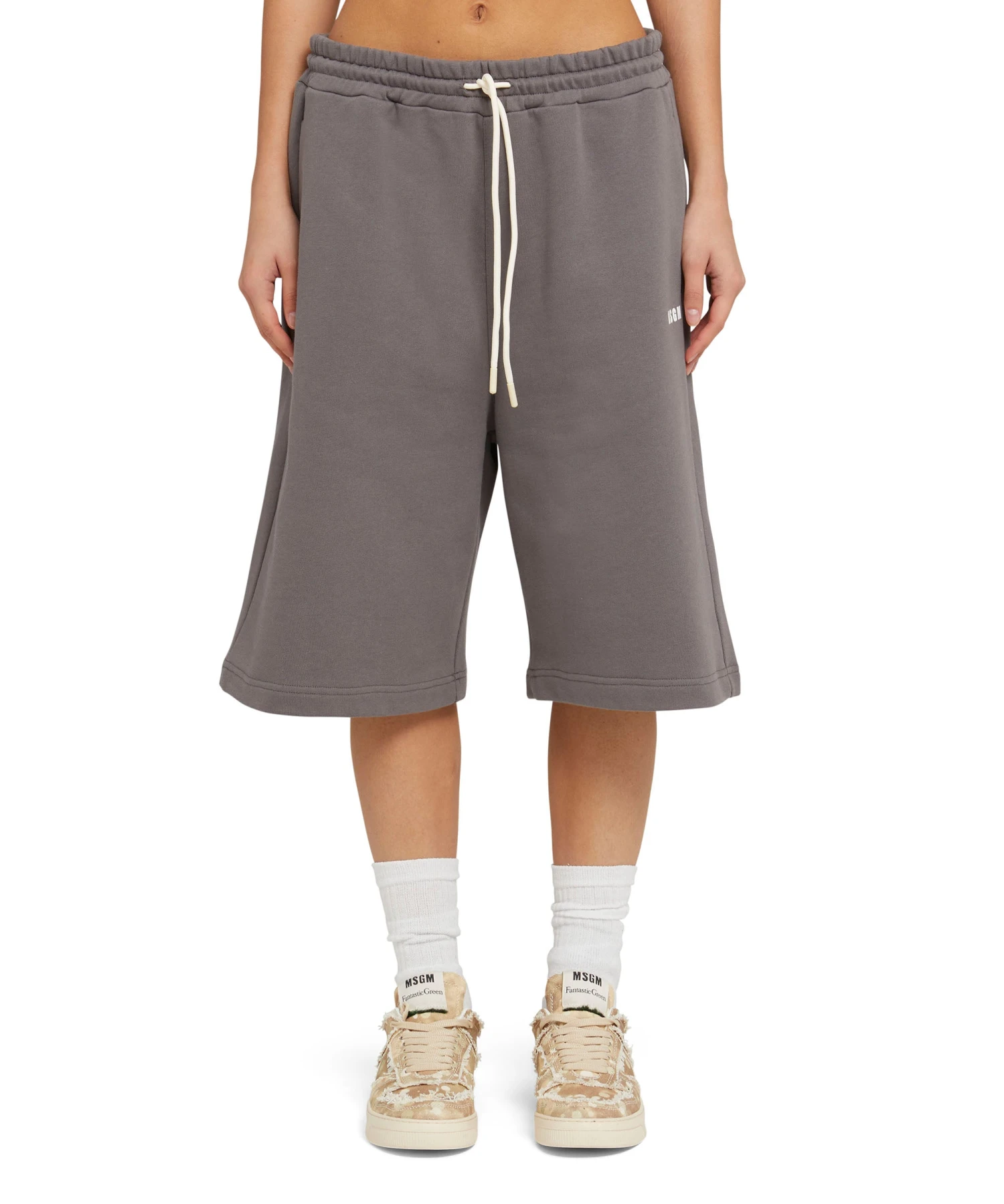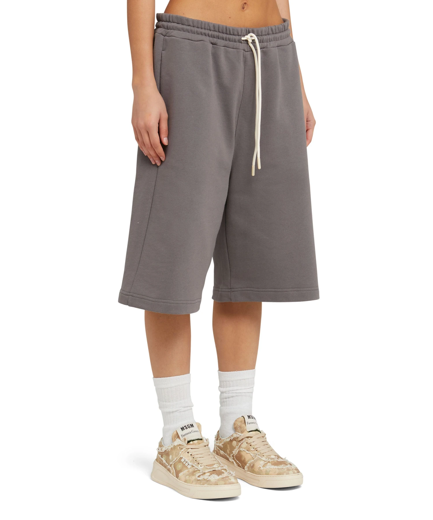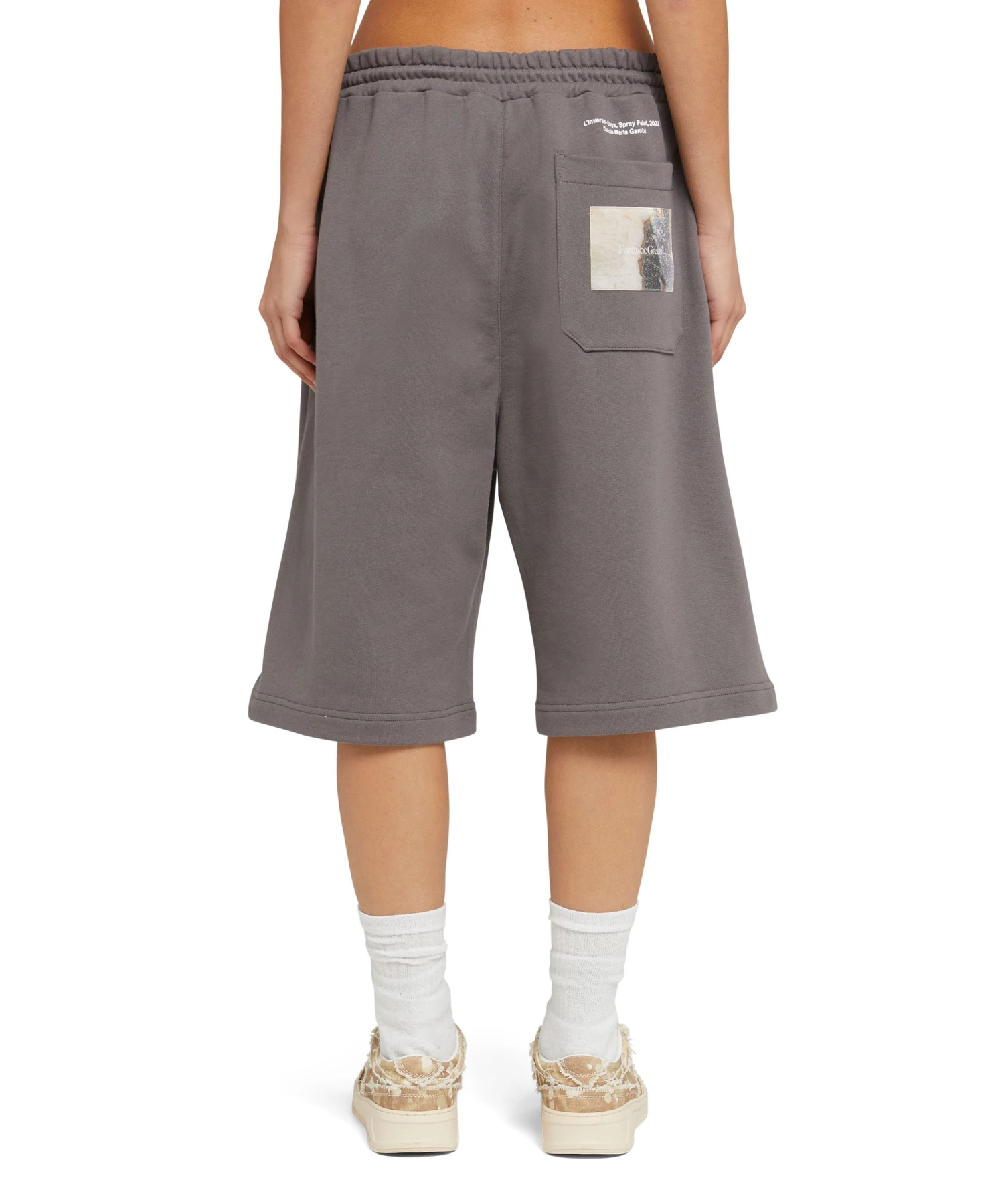 The Fantastic Green capsule for the Spring/Summer 24 season is developed in collaboration with the artist Duccio Maria Gambi and the works of his “L’inverse series” collection. Certified organic cotton shorts, made from entirely sustainable fabric. Elasticized waistband with external drawstring, roomy legs and knee length.