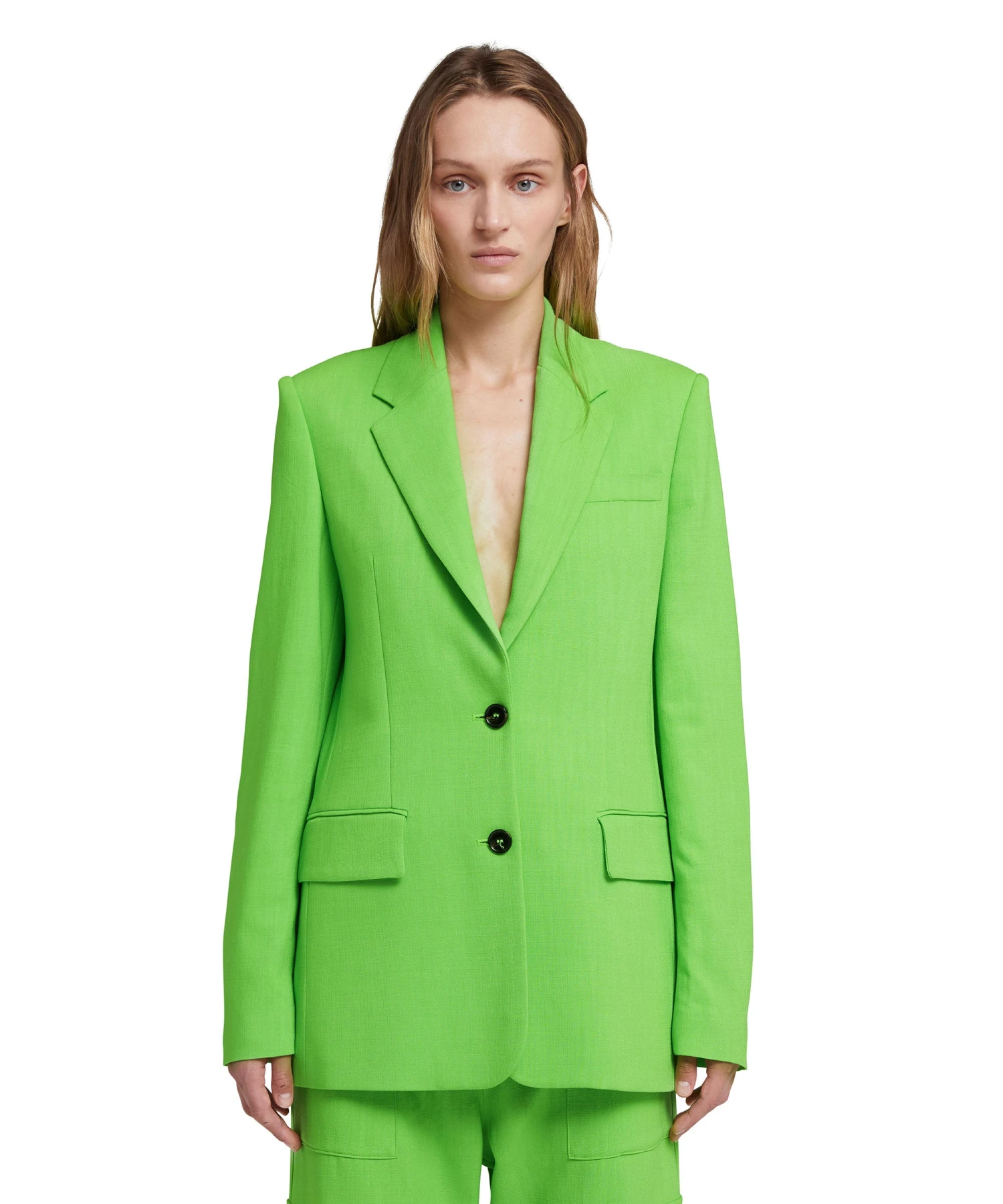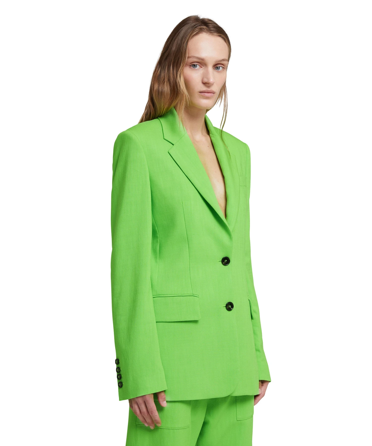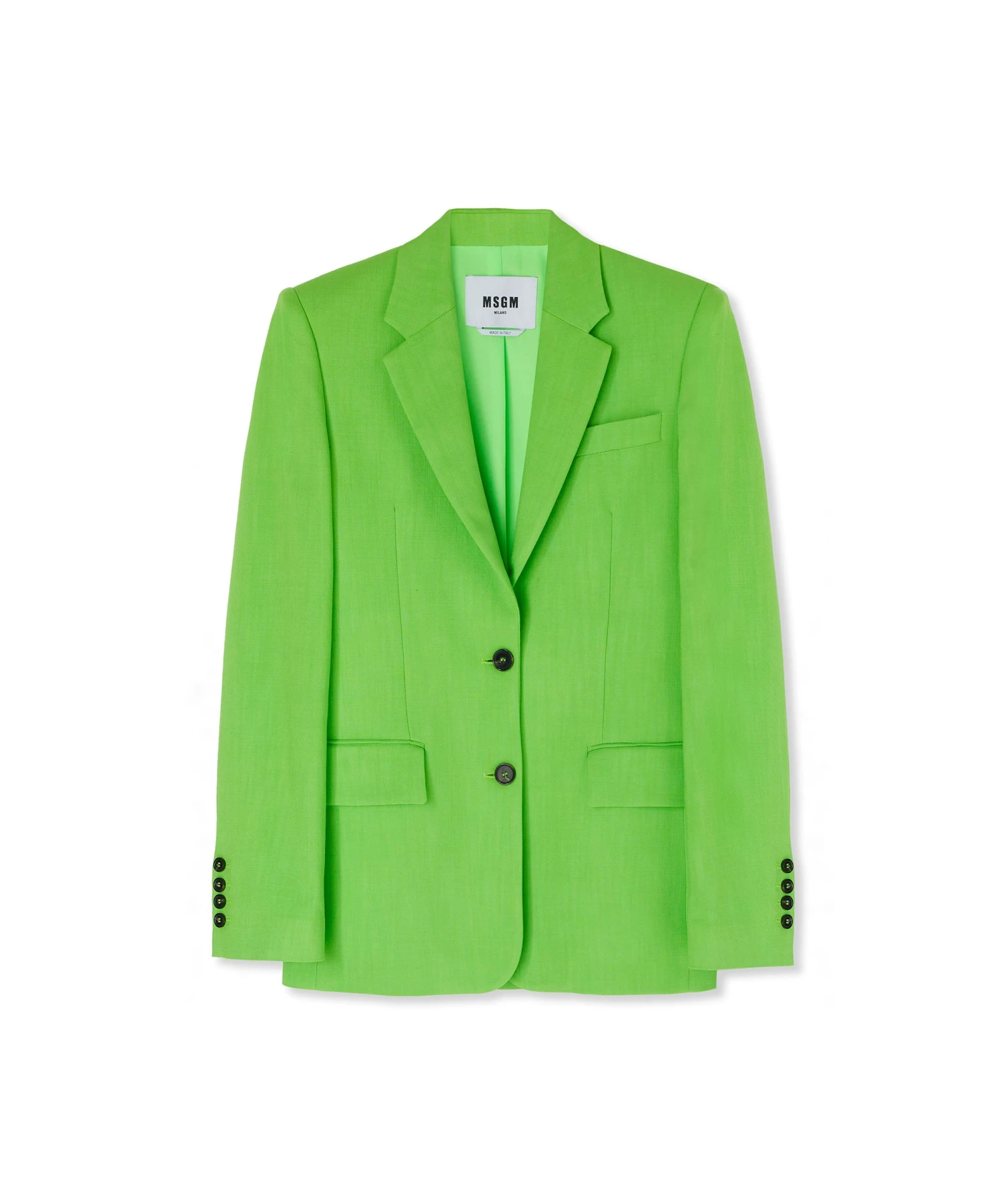 Flamed viscose canvas single-breasted two-button jacket with lapels, flapped pockets and breast pocket. Internal shoulder pads. Regular fit.