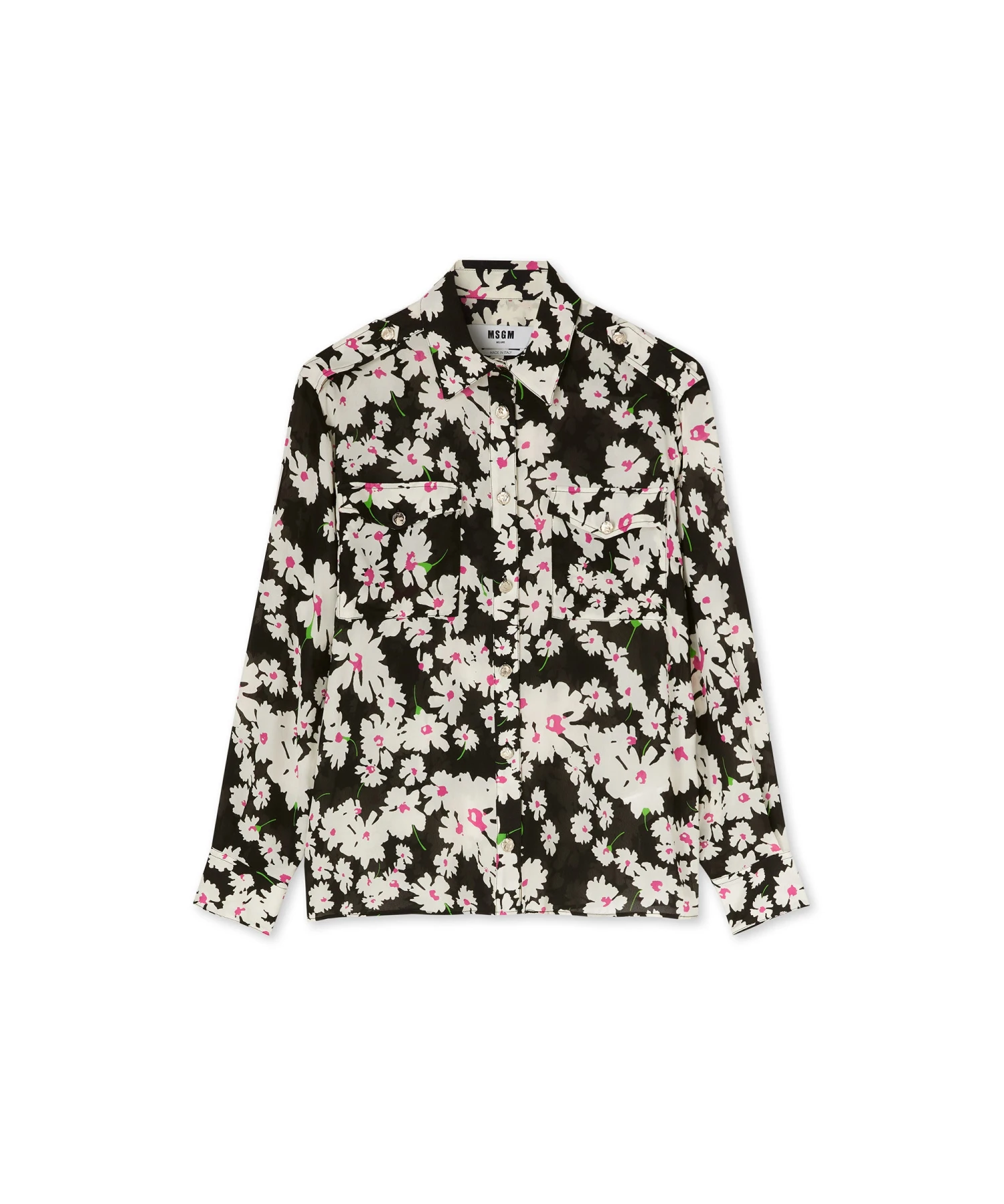 Fluid fabric long-sleeve shirt with daisy print and visible jeweled buttons. Regular fit.