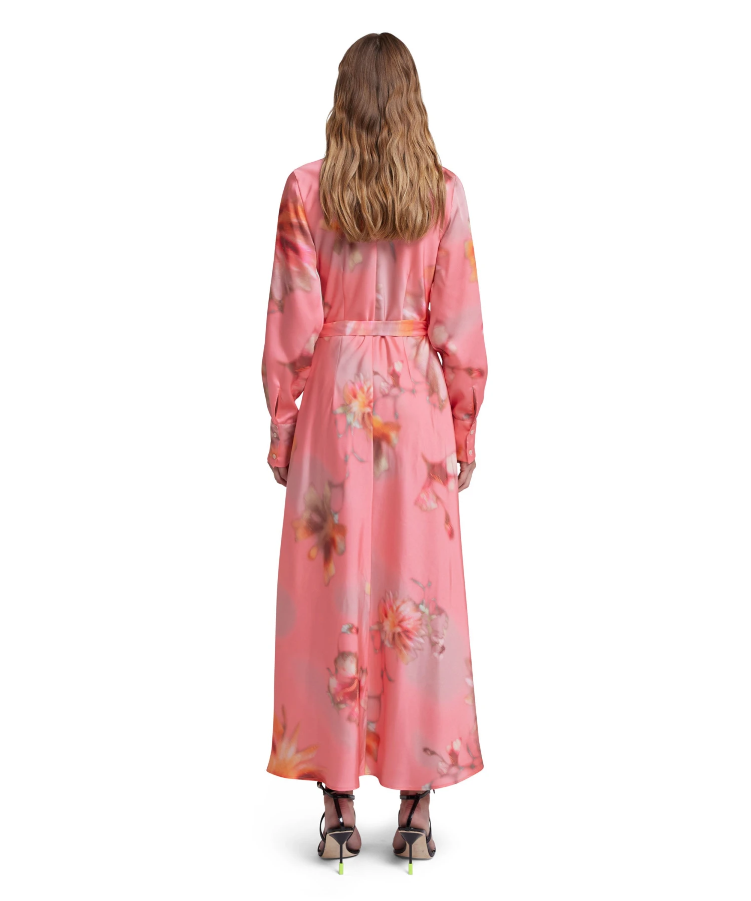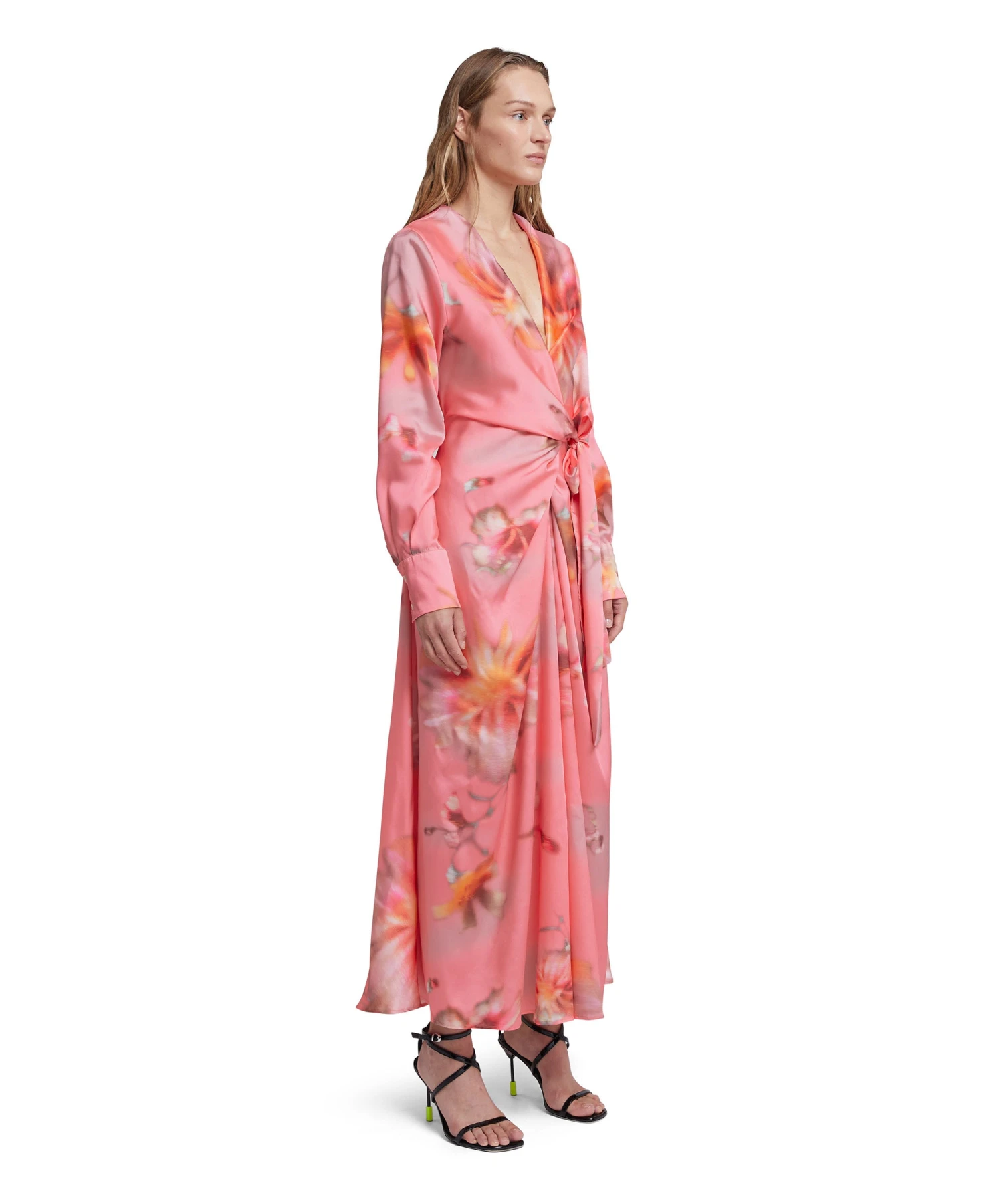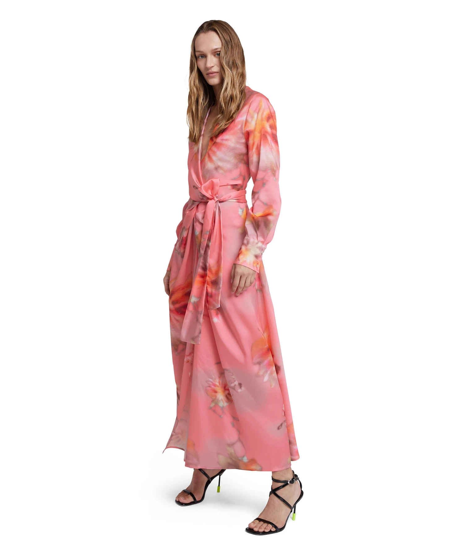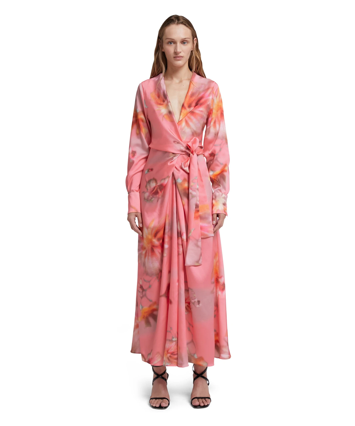 Fluid fabric wrap dress with adjustable waist fastening and “desert flowers” print. Deep v-neckline, shirt-style collar and cuffs. Regular fit.