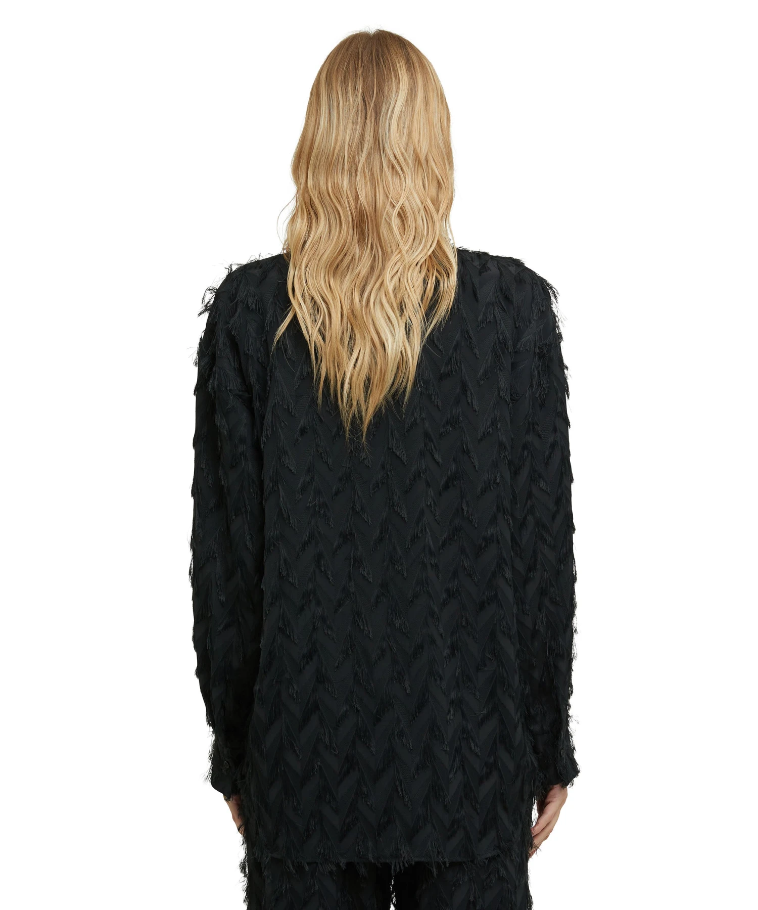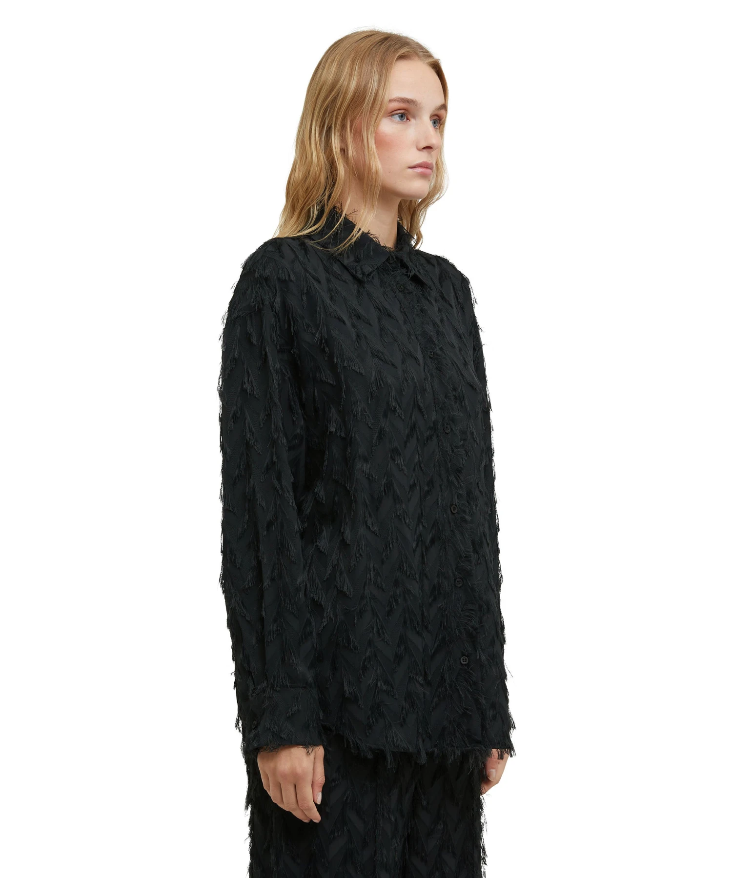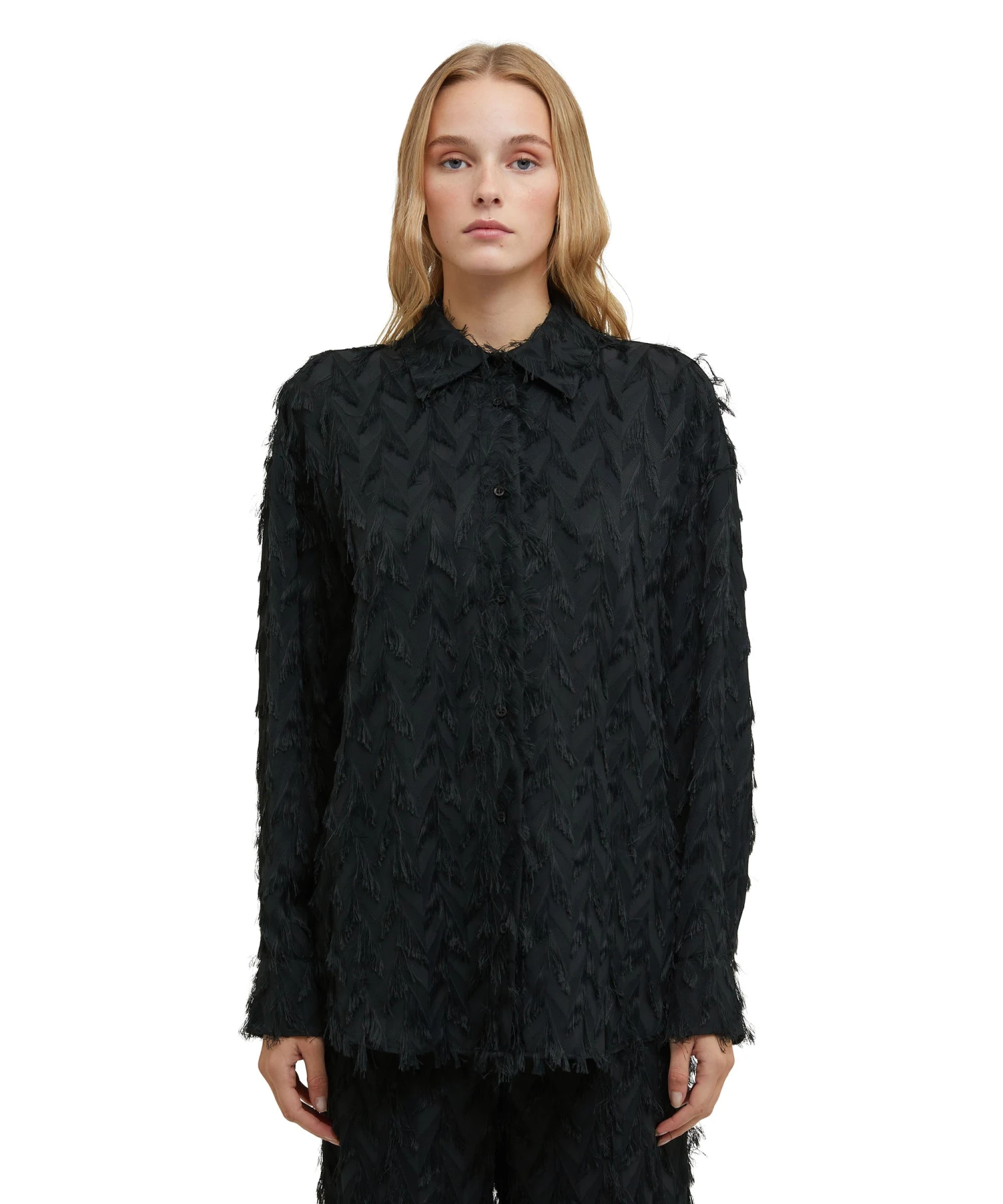 Fluid fil coupé viscose shirt. Classic collar, closure with visible buttons,long sleeves and slightly longer rounded hem on the back. Regular fit.