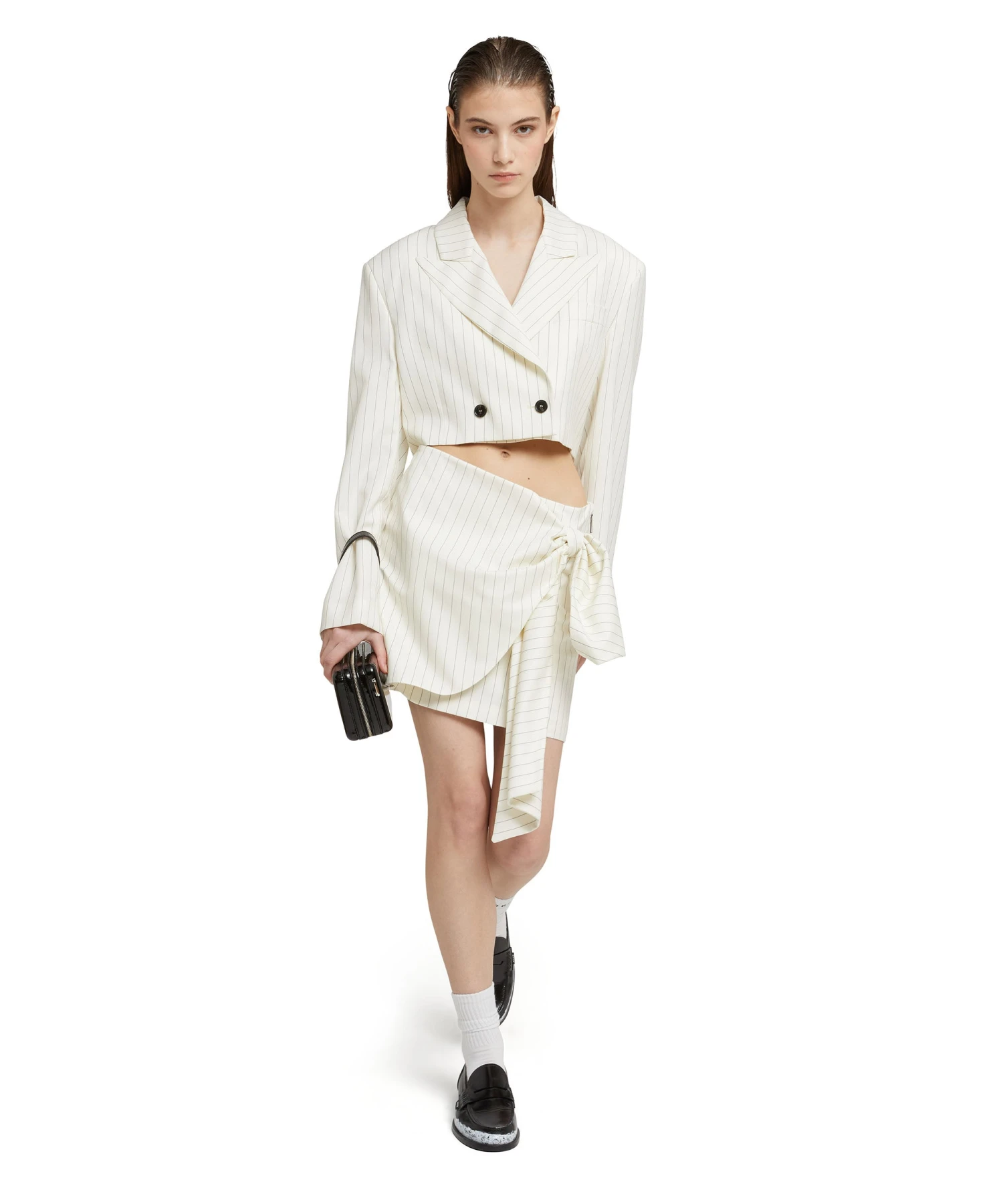 Be the first to review “Fresh Wool Pinstripe Draped Mini Skirt With Bow” Cancel reply