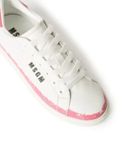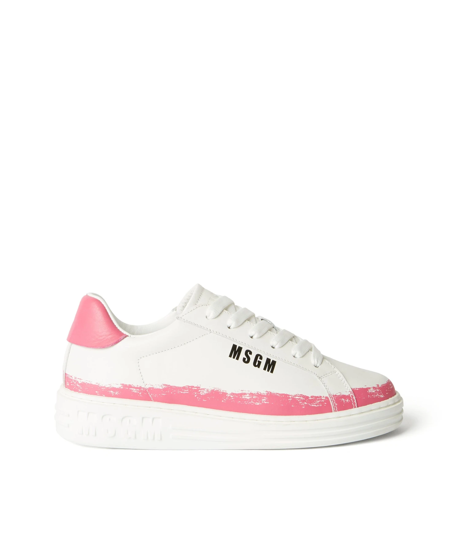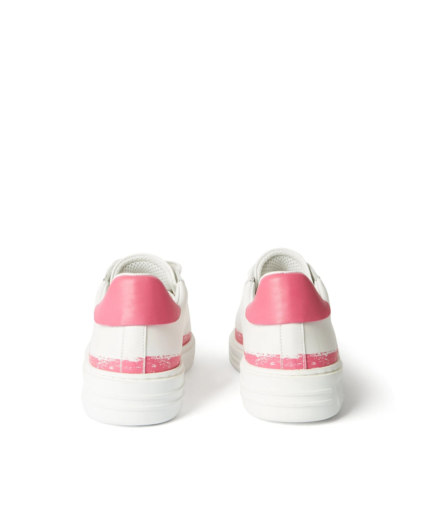 Leather sneakers with rubber box sole with logo. Flat waxed cotton laces. Pink leather heel patch and logo printed on the side. Bottom height: 3.5 cm / 1.4 inches.
