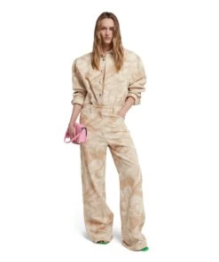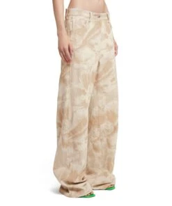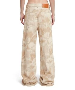 Safari is the inspiration of the theme of the Spring/Summer 24 collection.The denim with jacquard workmanship recreates the design of desert daisies. Jacquard fabric 5-pocket pants with roomy legs. Belt loops at the waist. Button and hidden zipper closure. Logoed patch on the back. Oversize fit.