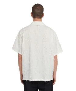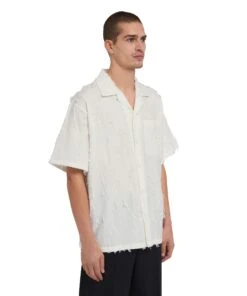 Jacquard cotton bowling shirt with fringed detail and visible buttons, pocket and logo label applied on the back. Oversize fit.