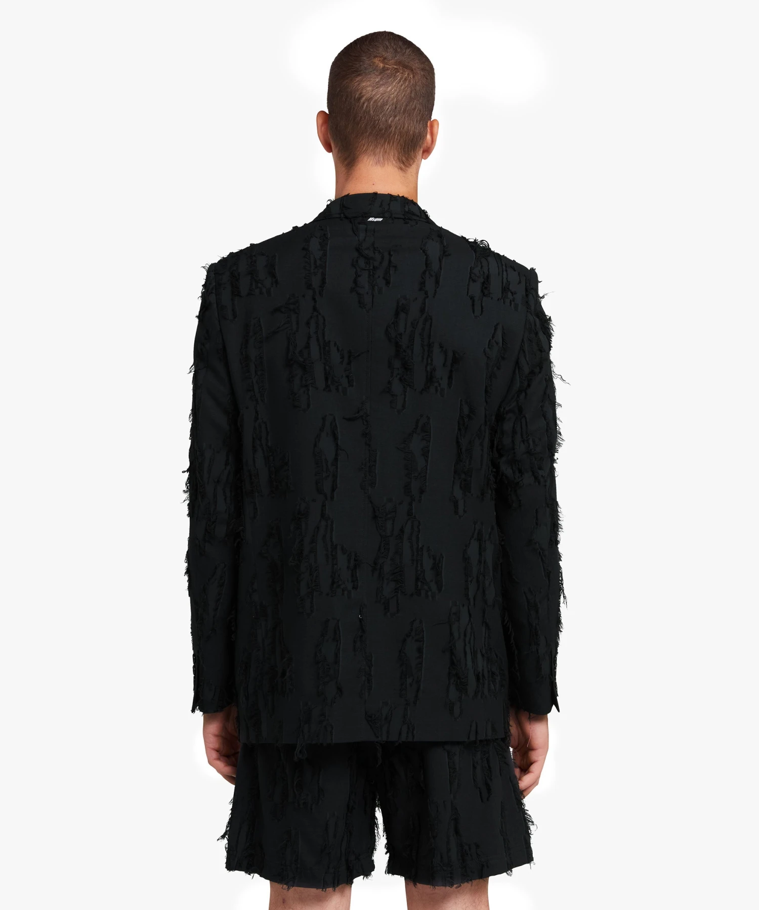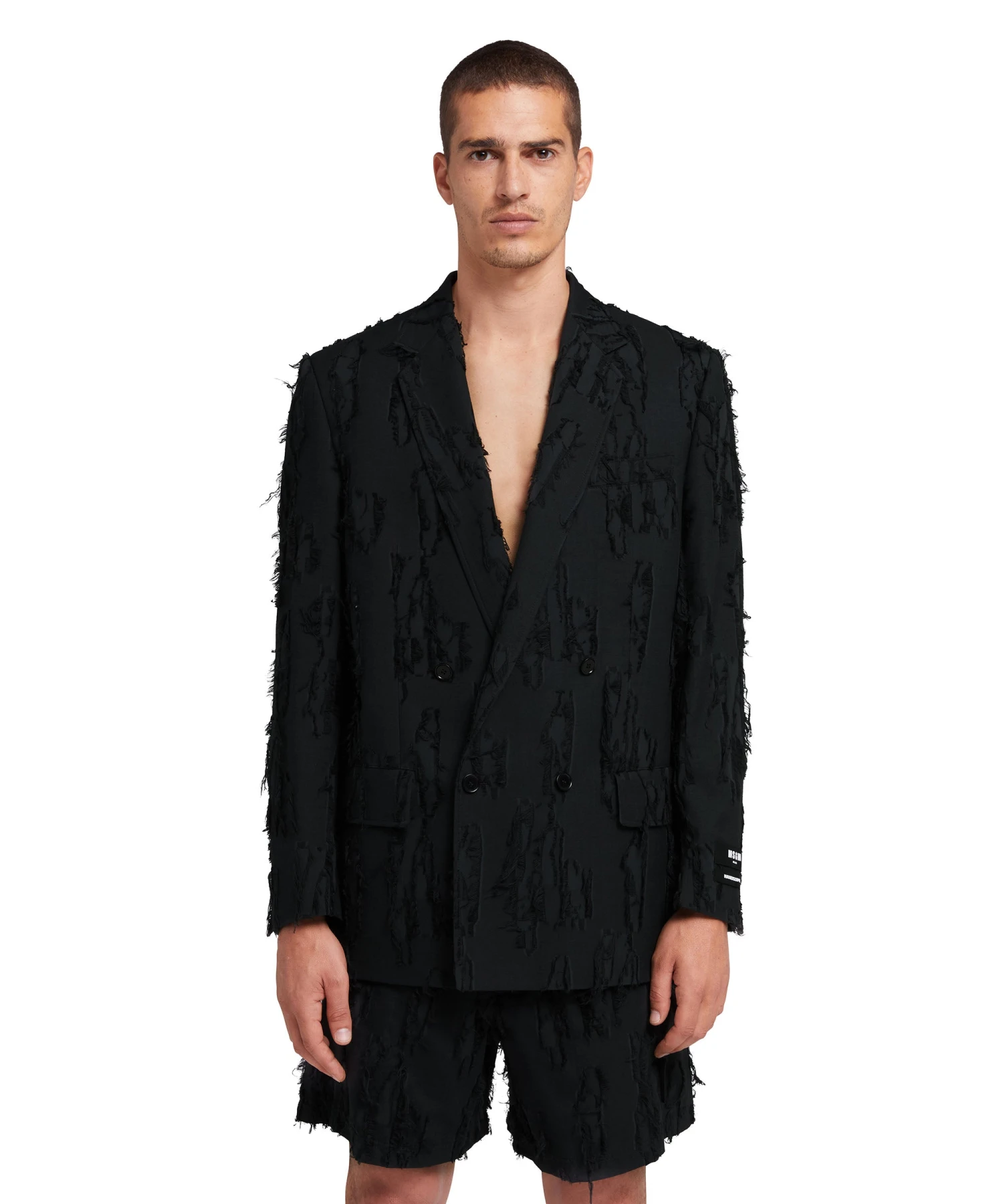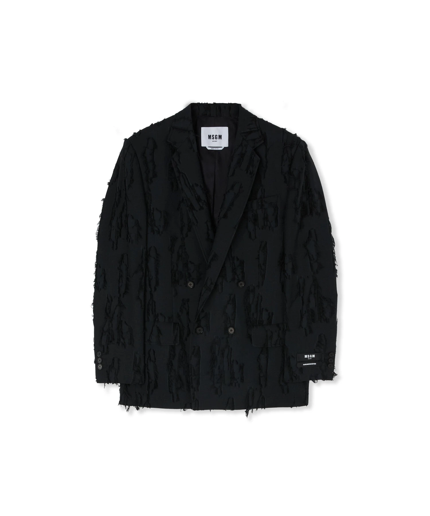 Jacquard cotton double-breasted jacket with fringed details and lapels, flapped pockets and breast pocket. Logo label on the back. Regular fit.