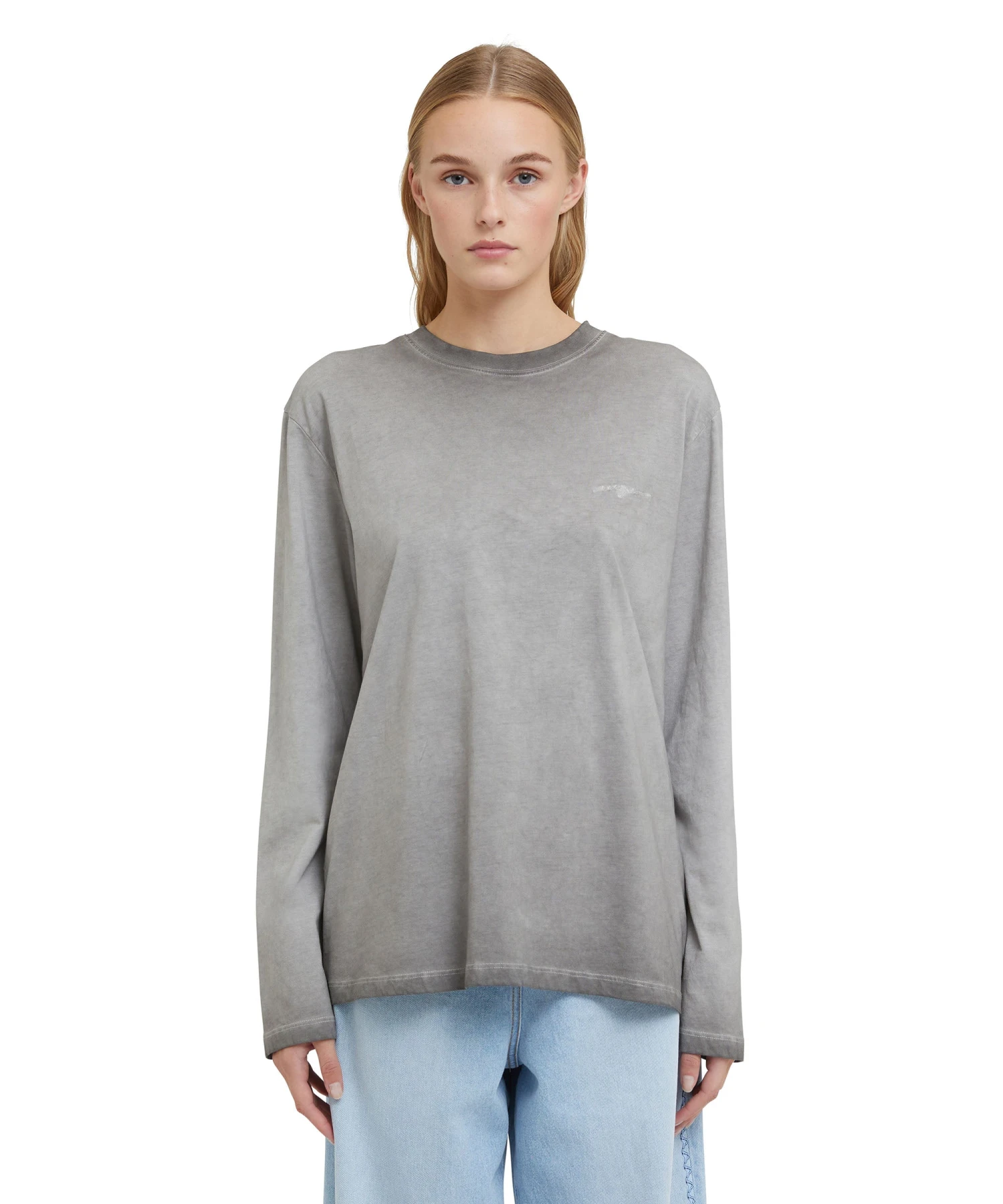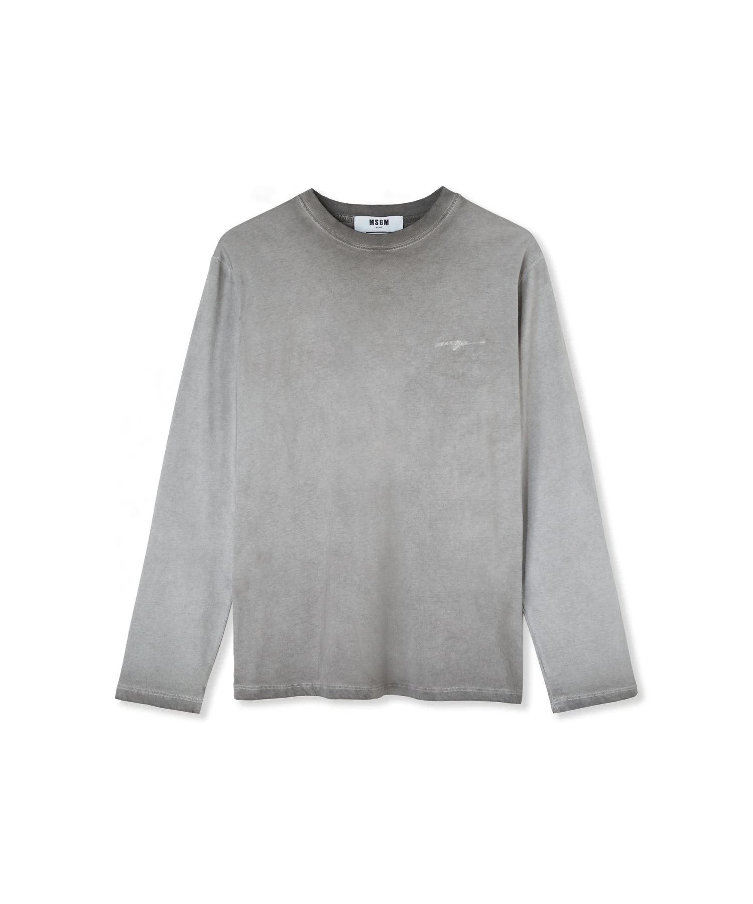 Fabric long-sleeve crewneck t-shirt with faded treatment and MSGM logo embroidered on the chest. Regular fit.