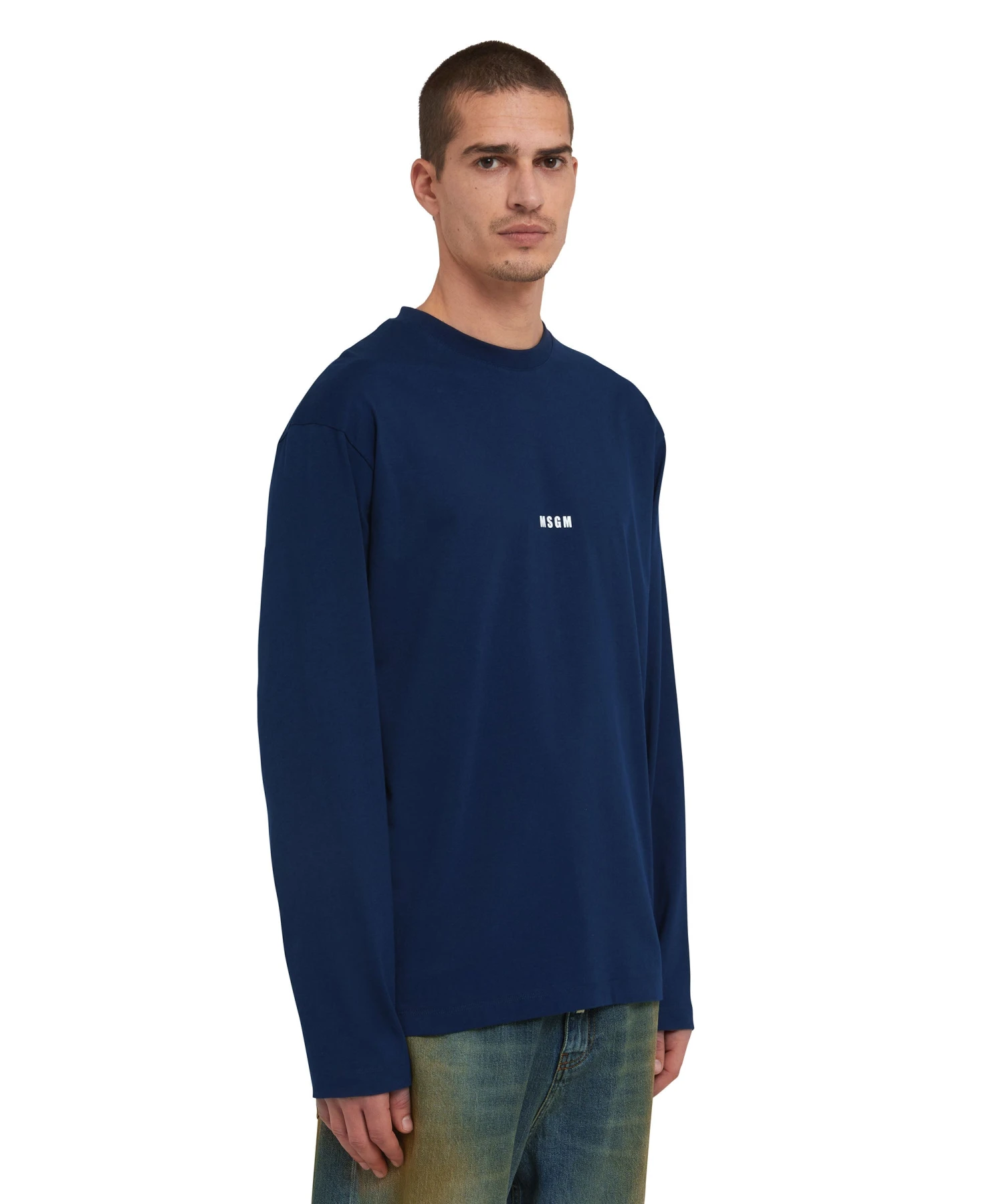 Solid color long-sleeve cotton crewneck t-shirt with contrasting MSGM mini logo. Short sleeves and ribbed collar. Regular fit.