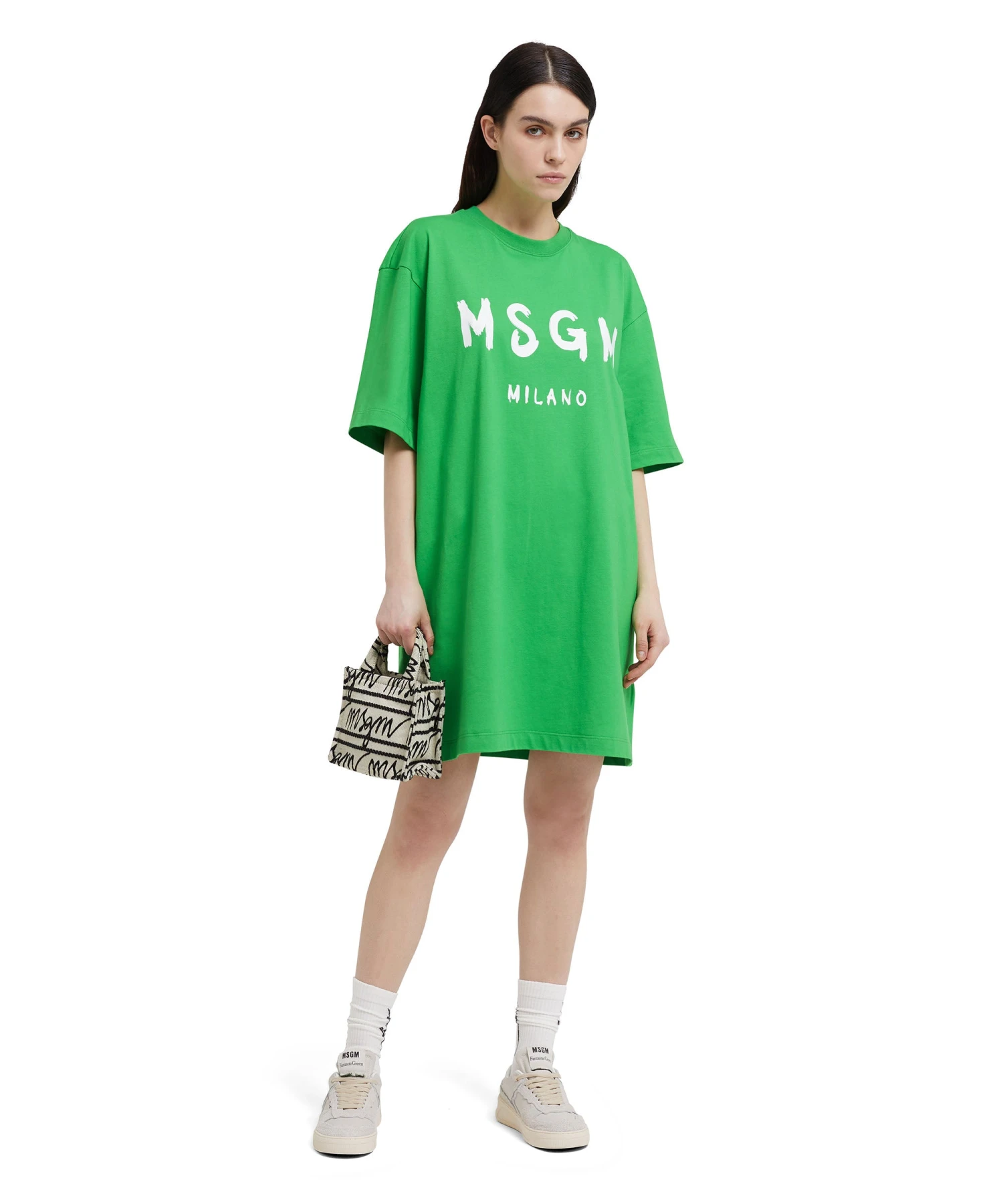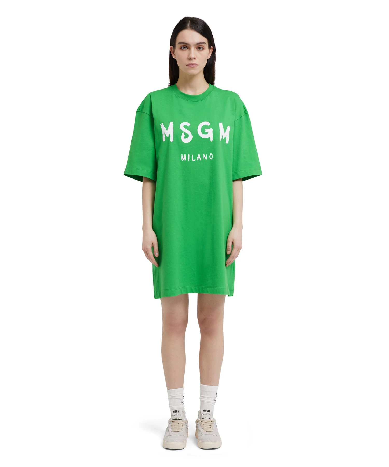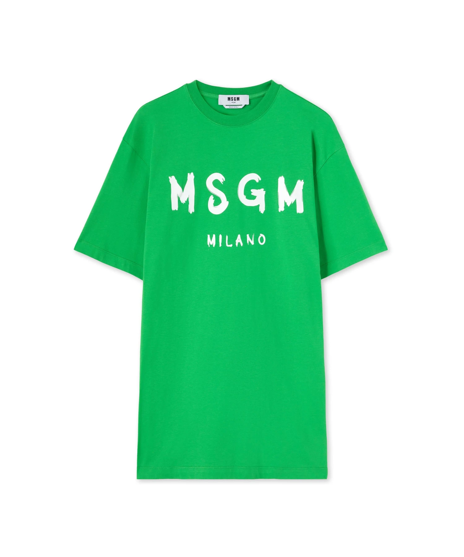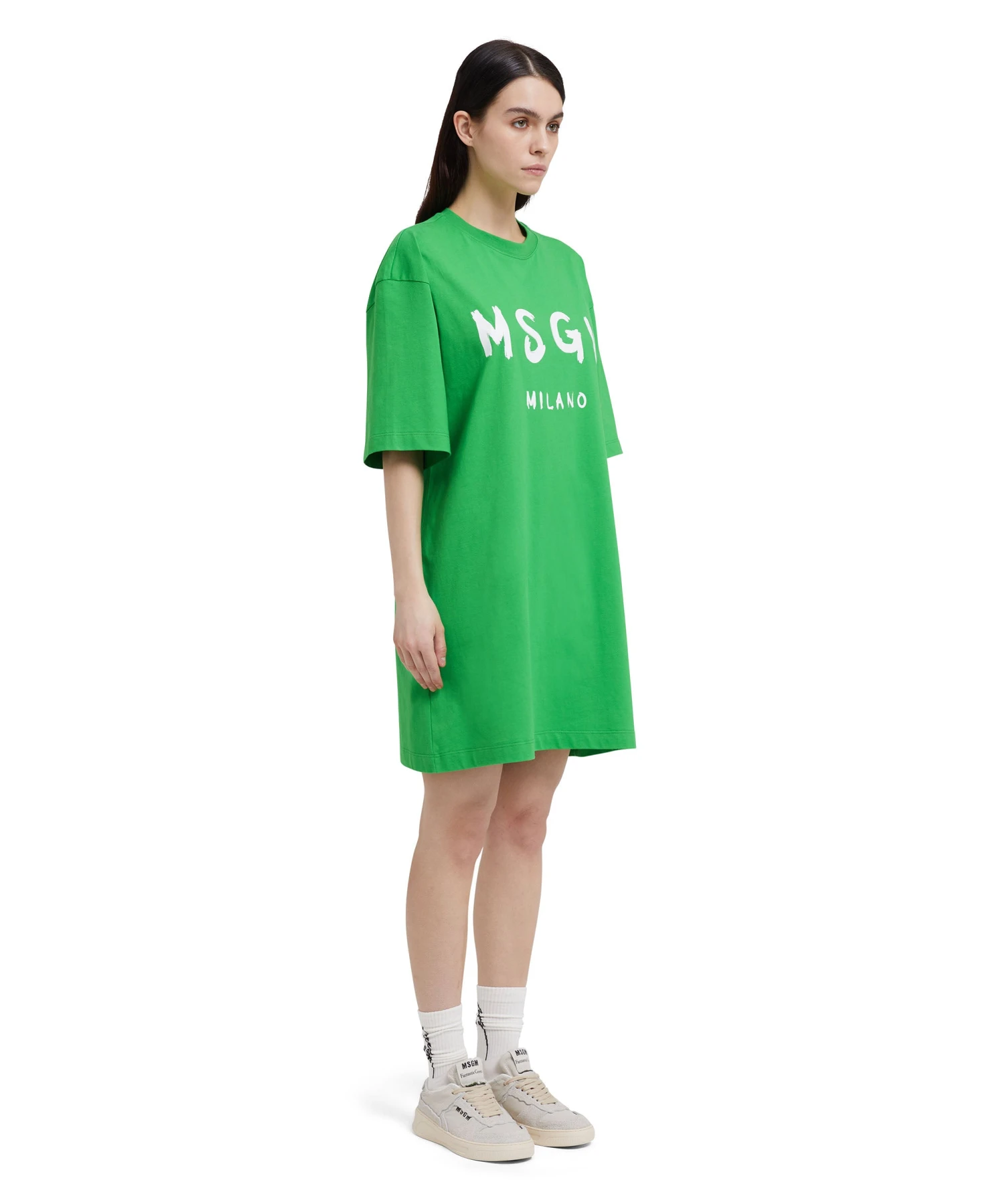 Solid color cotton t-shirt dress with contrasting MSGM brushstroke logo on the front. Oversize fit.