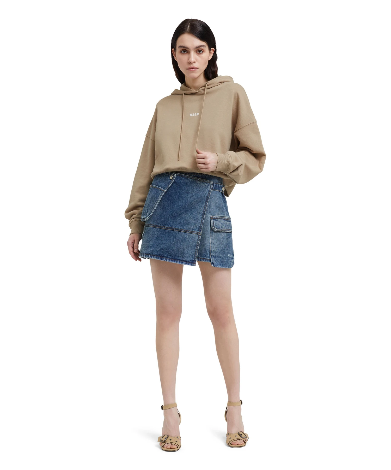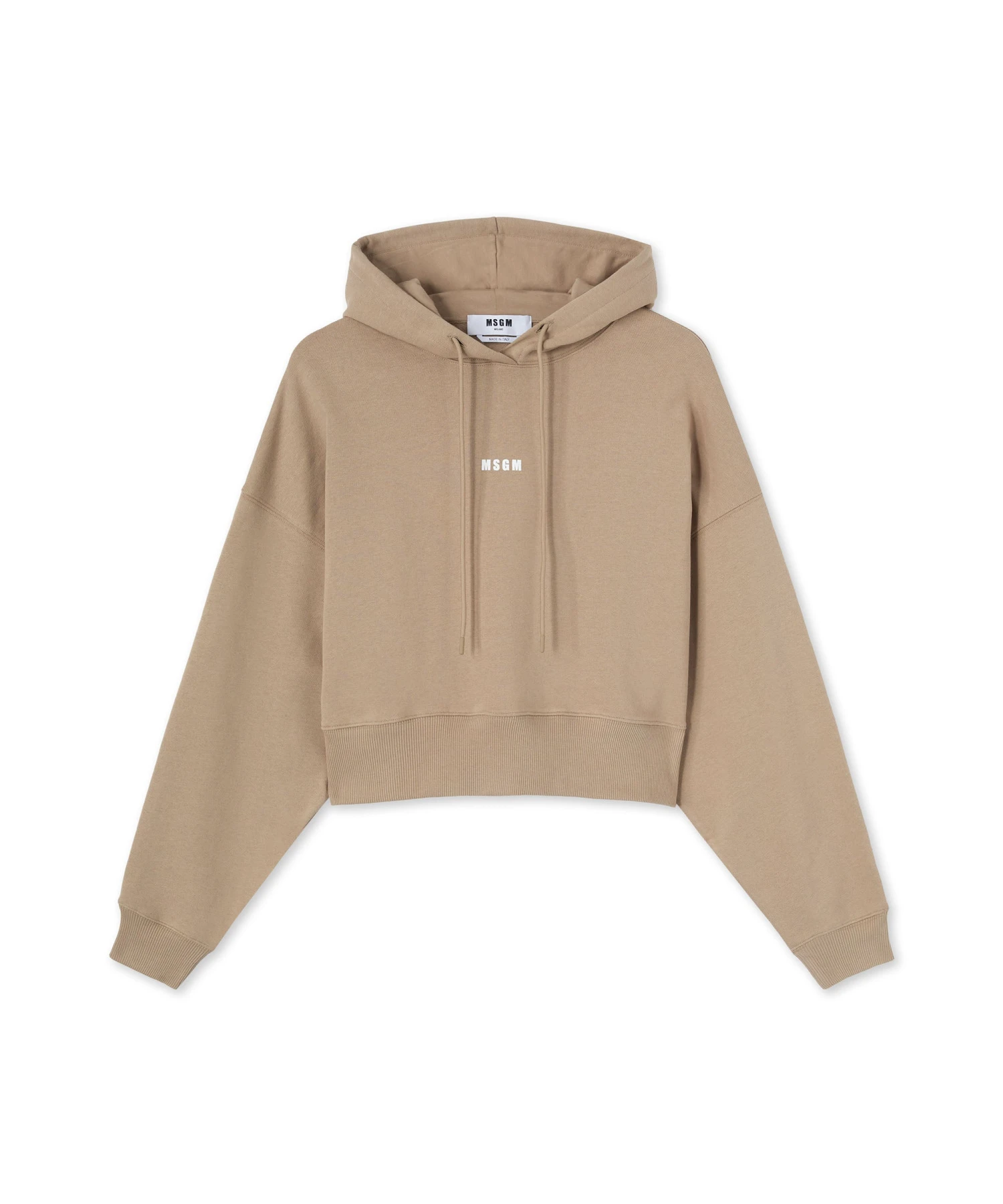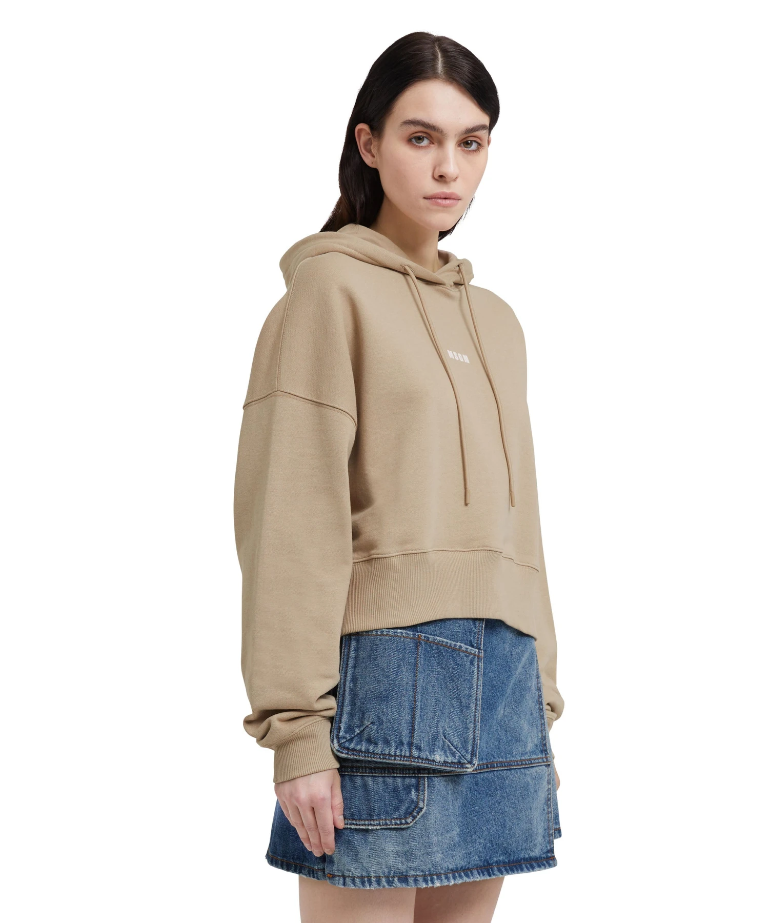 Cropped hooded sweatshirt with contrasting MSGM mini logo print on the chest. Ribbed bottom and cuffs. Oversize fit.