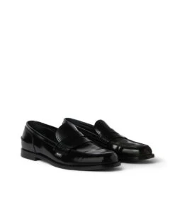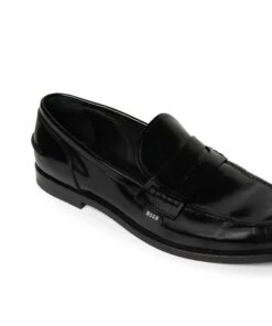 Black abraded calfskin loafers with leather soles. Fabric patch with jacqard logo. Heel height: 1 cm / 0.4 inches.