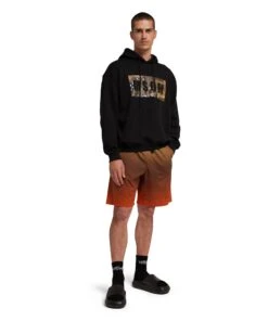 Safari is the inspiration of the theme of the Spring/Summer 24 collection. The smoked print recalls the effect of a sunset on the savannah. Printed poplin shorts with elasticized waistband and external drawstring. Side pockets. “Impact” logo embroidered on the front and logo label applied on the back pocket. Regular fit and knee length.