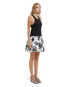 Short sleeveless dress with ribbed jersey top ribbed jersey and poplin balloon skirt with graphic print all-over. Regular fit.