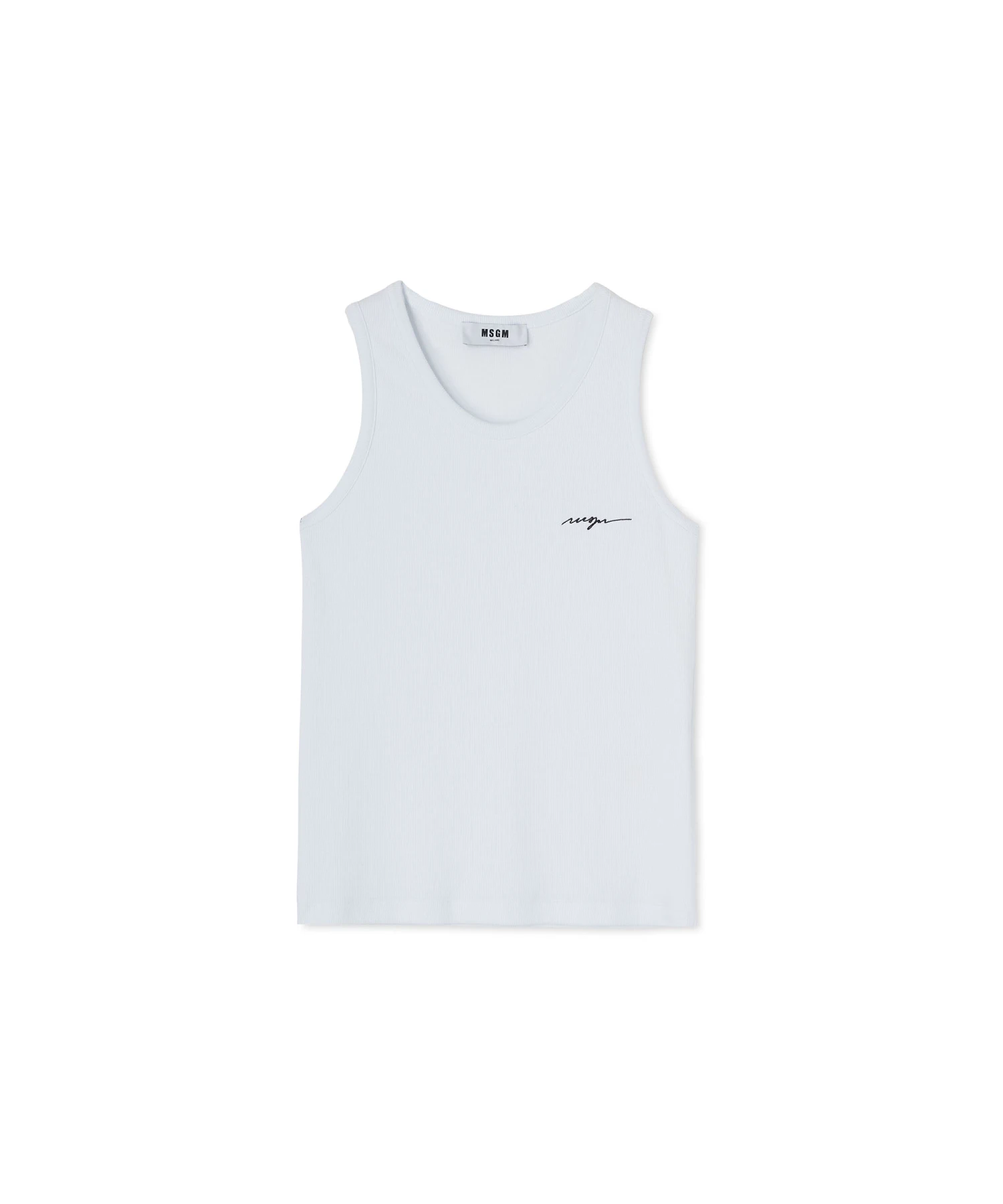 Be the first to review “Ribbed Jersey Tank Top With Embroidered Cursive Logo” Cancel reply