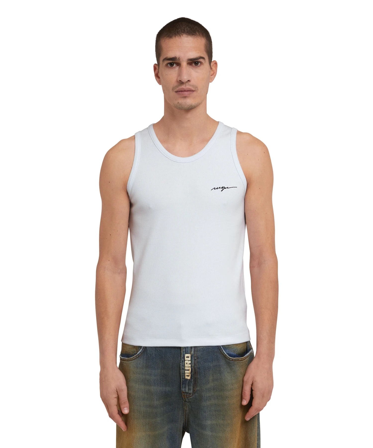 Cotton tank top with contrasting embroidered logo. Snug fit.