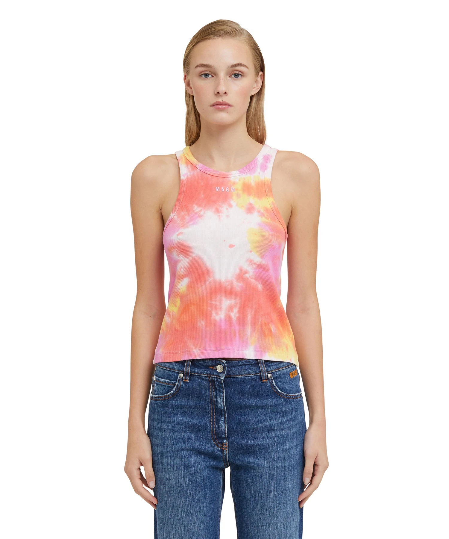 Jersey tank top with ribbed pattern and tie-dye treatment. MSGM logo embroidered on the front. Regular fit.