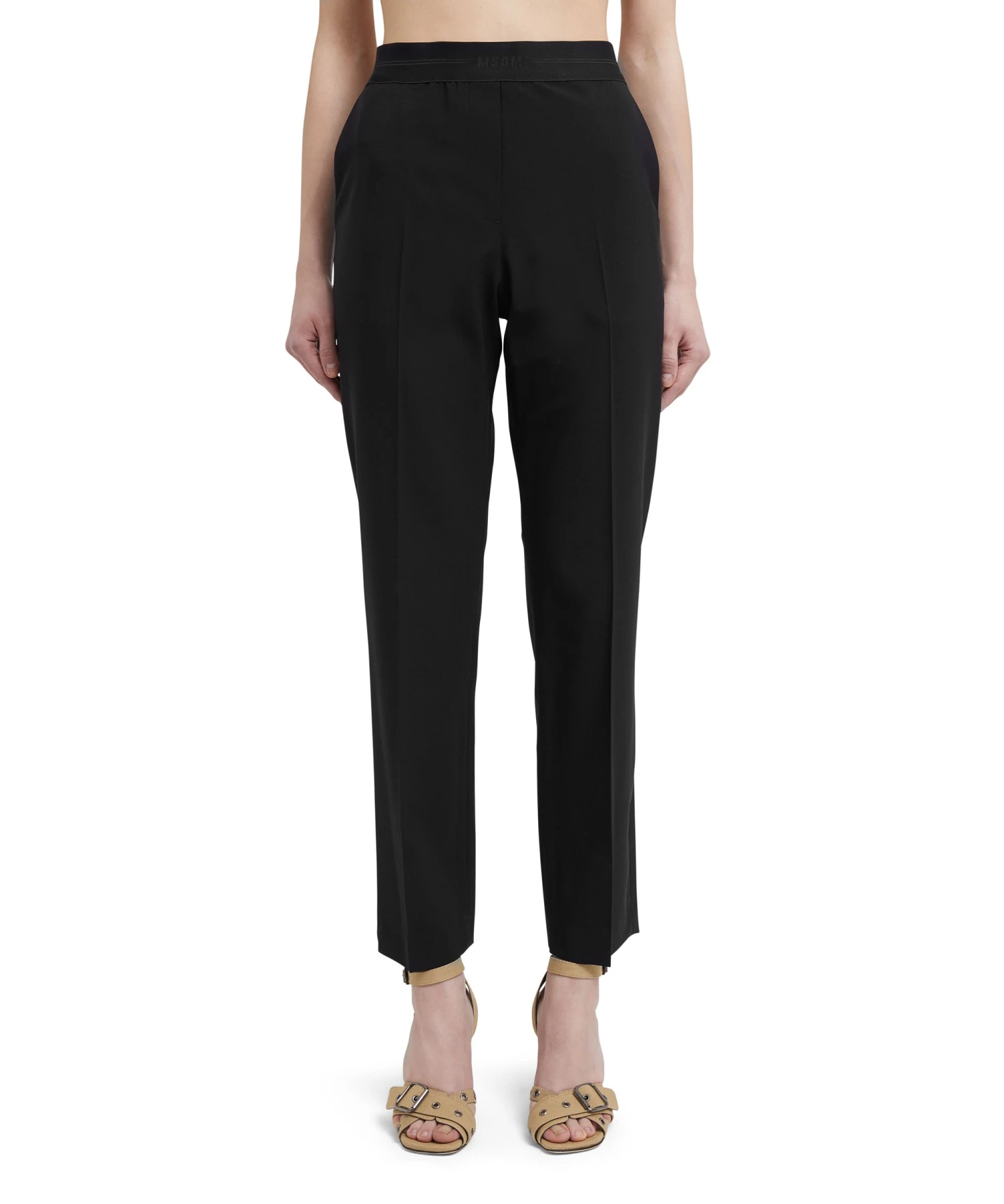 Fresh wool ankle-length pants. Welt pocket. Elasticized waistband with logo. Medium waist. Regular fit.