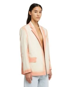 Stretch cotton gabardine single-breasted jacket enhanced by a “sprayed” treatment that highlights the profiles. Classic lapels, three front pockets and central back bottom vent. MSGM label applied on the back. Regular fit.
