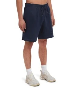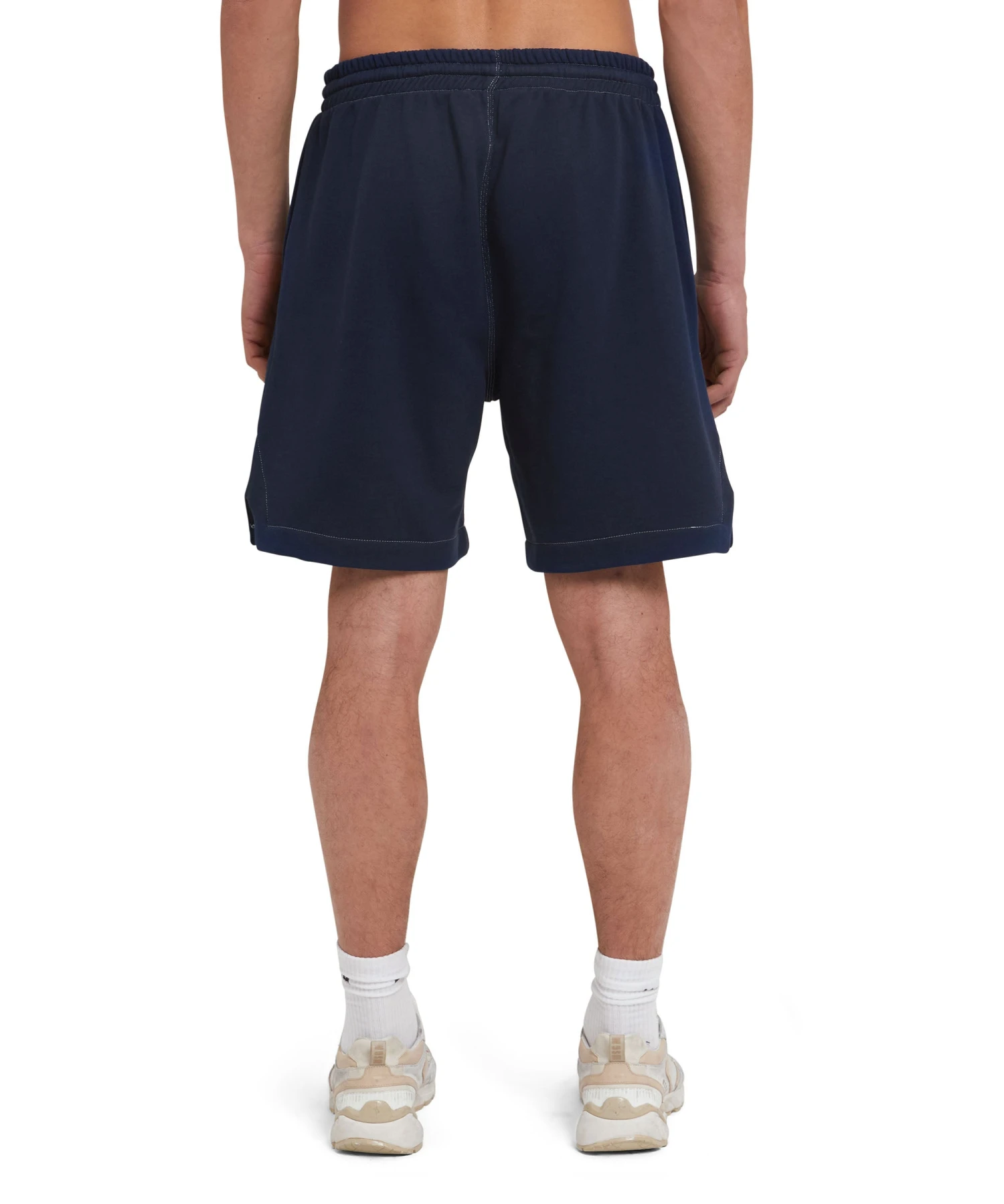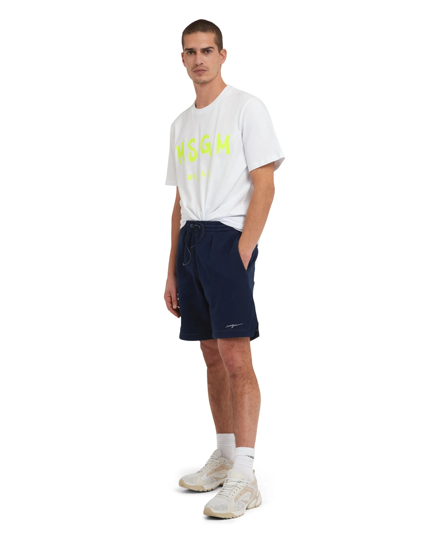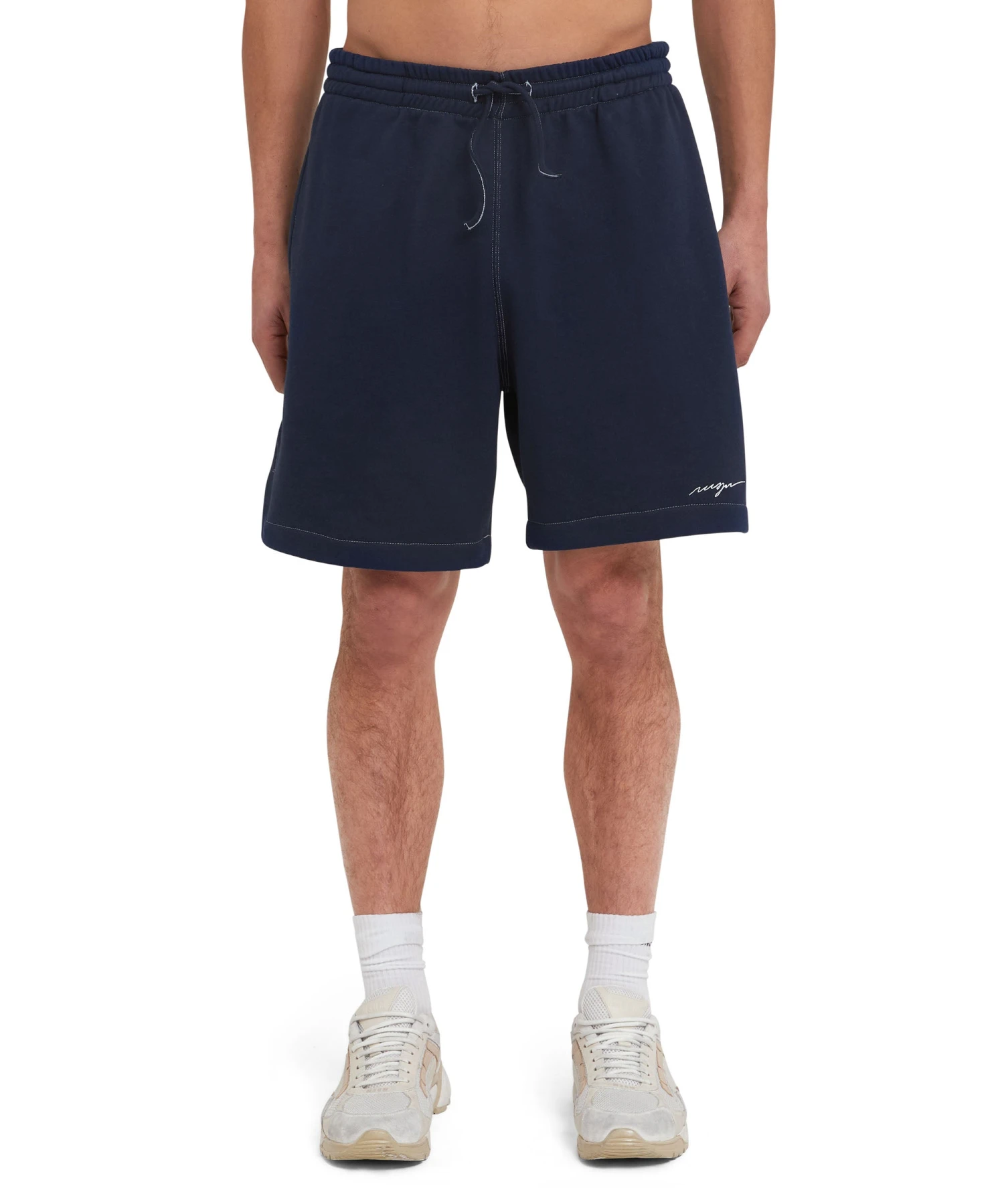 Lightweight sweat shorts with embroidered logo. Elasticized waist with visible drawstring. Side and back pockets. Regular fit and thigh length.