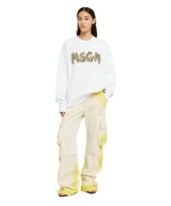 Solid color cotton crewneck sweatshirt with multicolored beaded MSGM logo embroidered on the front. Ribbed collar, cuffs and bottom. Oversize fit.
