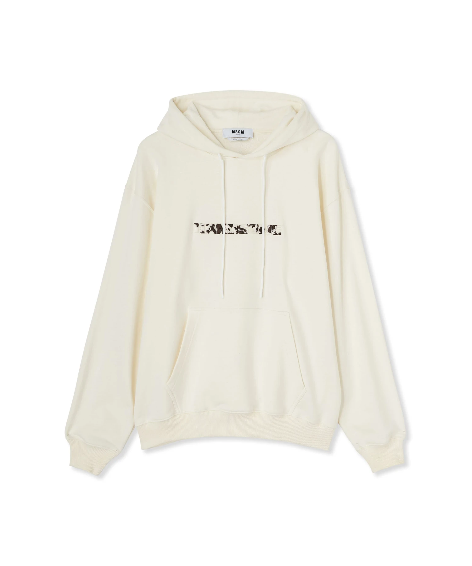 Lightweight hooded sweatshirt with pouch pocket and drawstrings. Contrasting color quote from the “Handsome” collection embroidered on the front