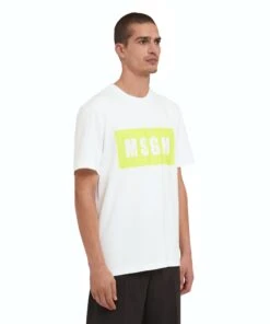 Solid color cotton crewneck t-shirt with MSGM box logo. Ribbed collar, short sleeves and ribbed collar. Regular fit.