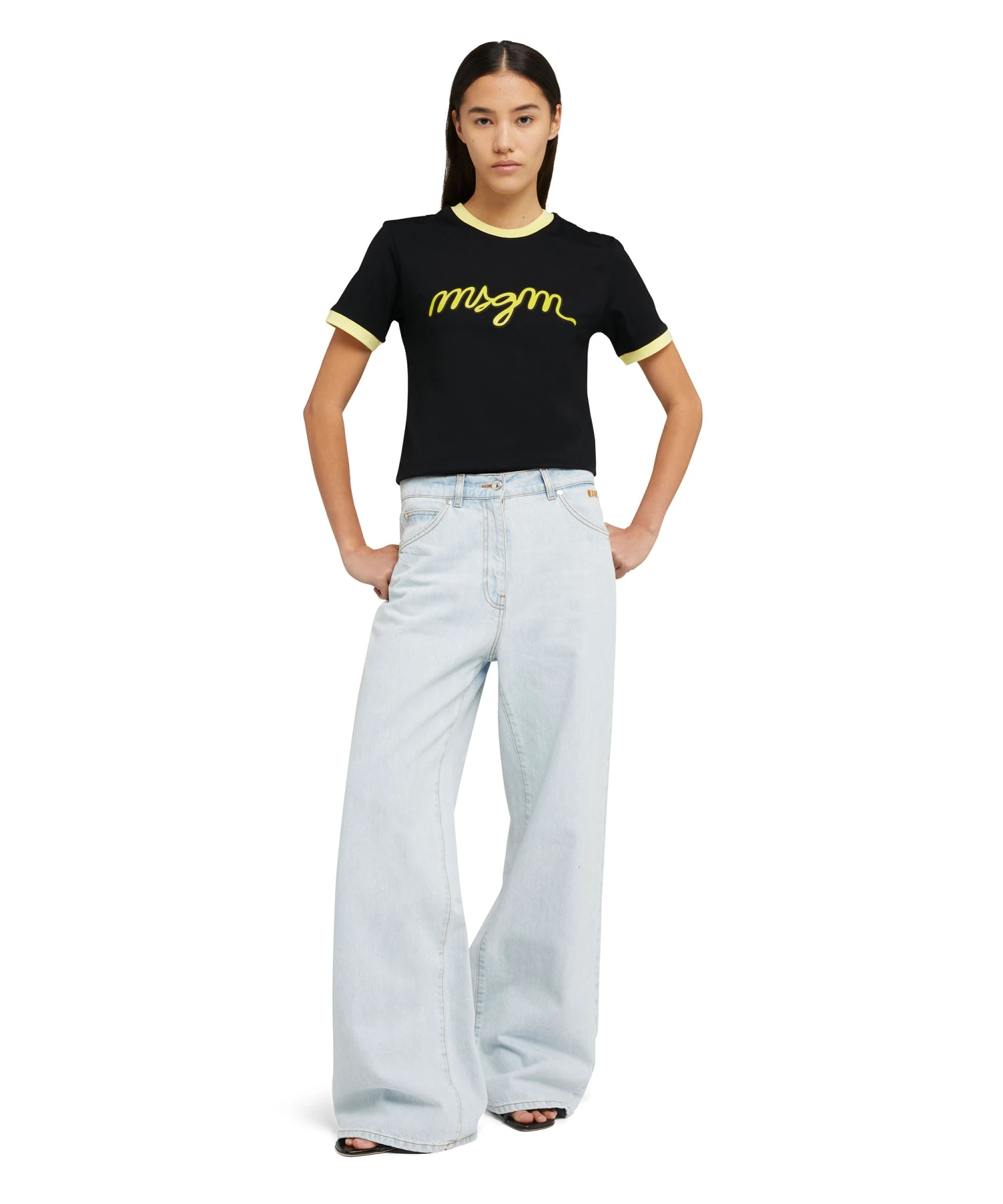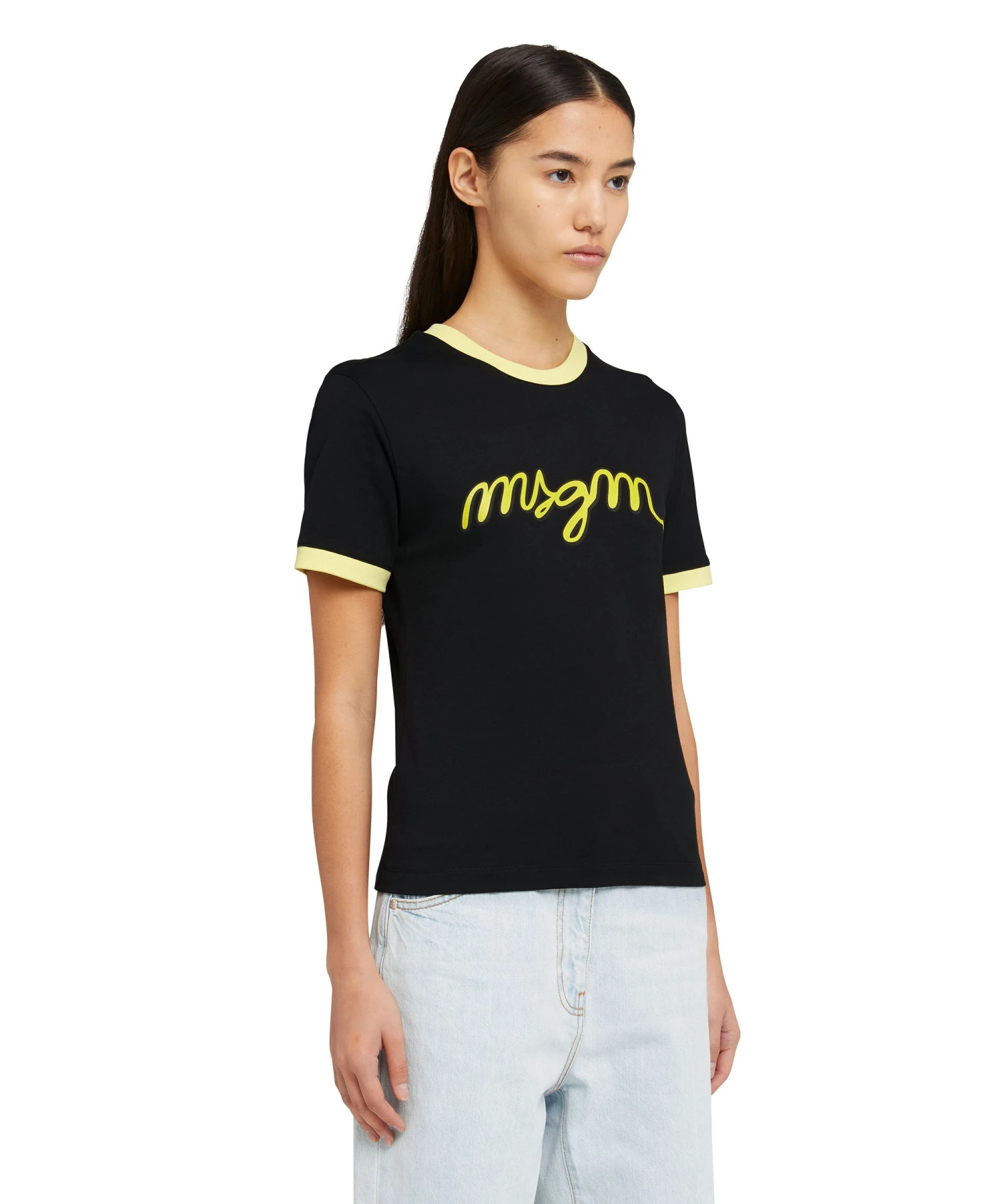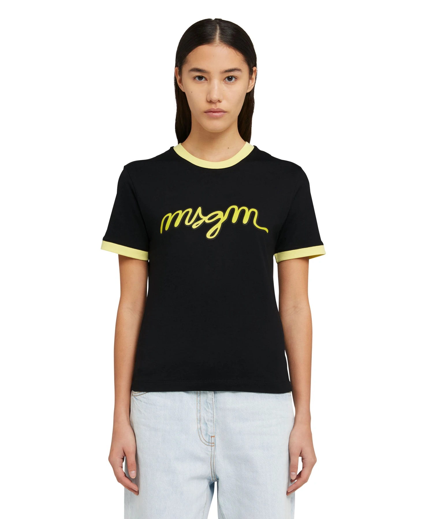 Solid color fabric t-shirt with contrasting edges and MSGM logo printed on the chest. Regular fit.