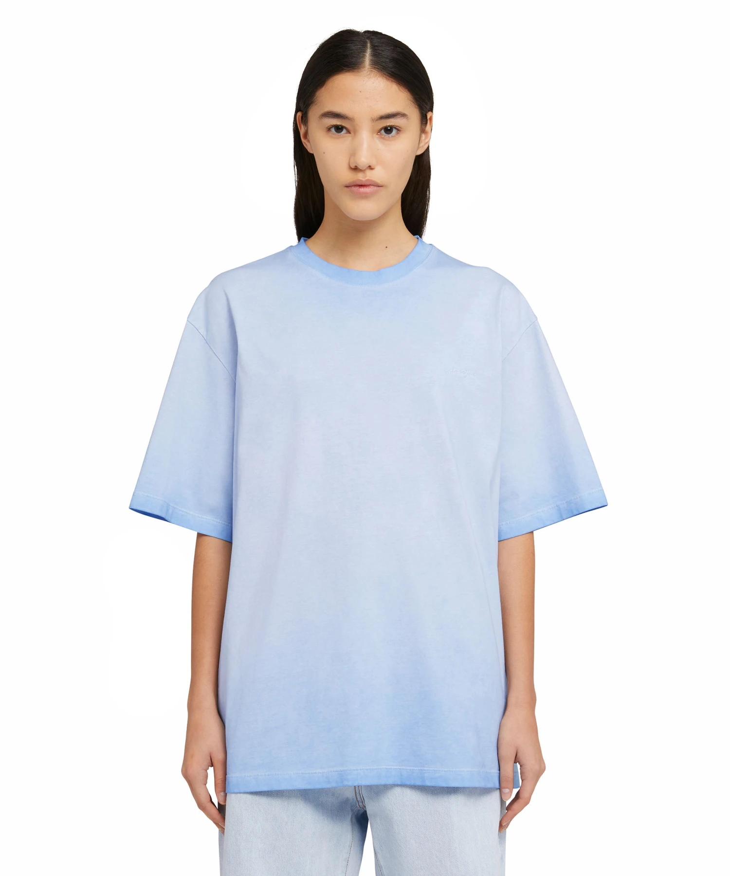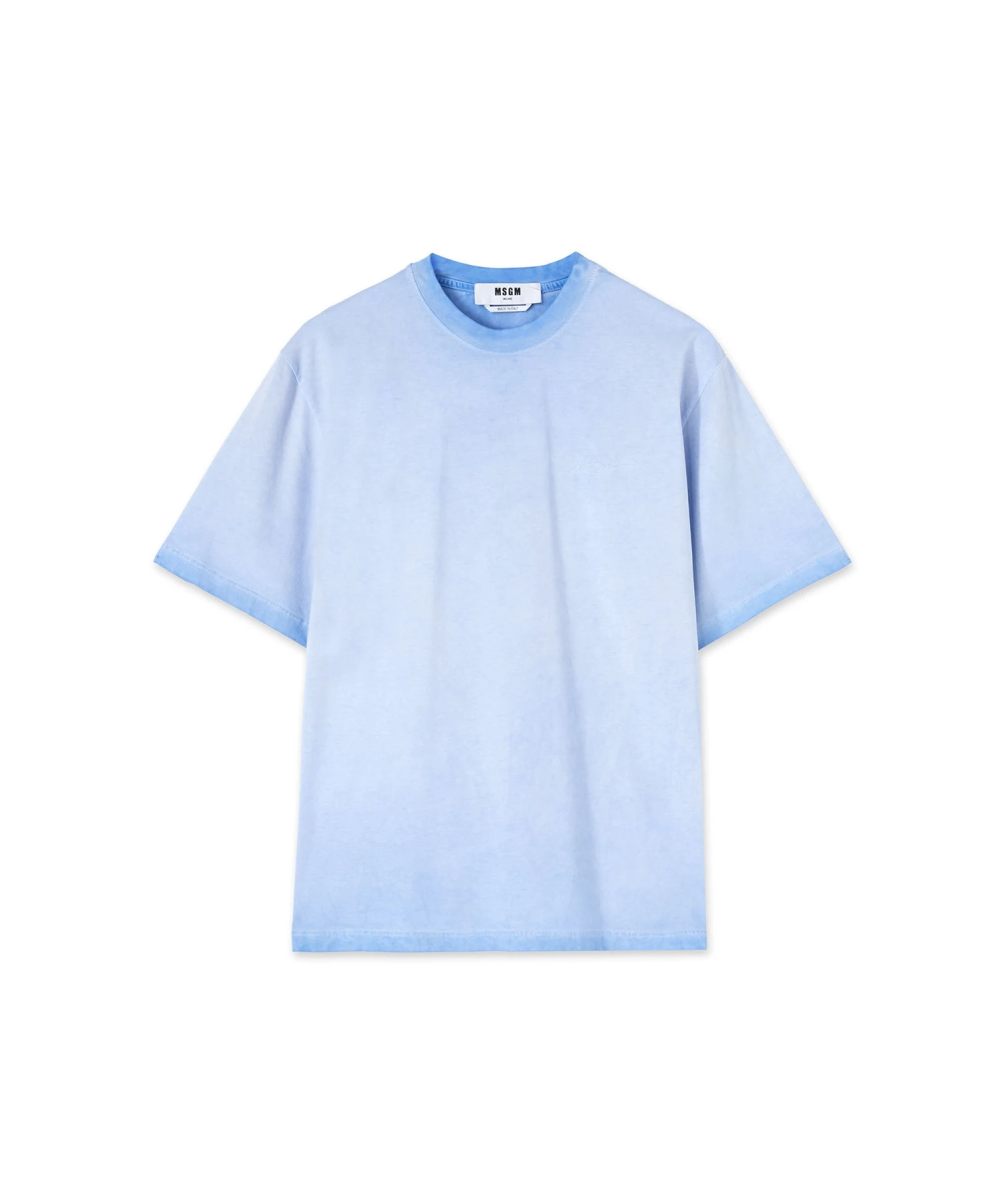 Crew-neck T-shirt made of cotton with faded treatment. Ribbed collar and boxy sleeves. MSGM logo embroidered in tone on chest. Oversize fit.