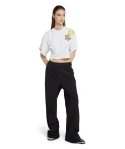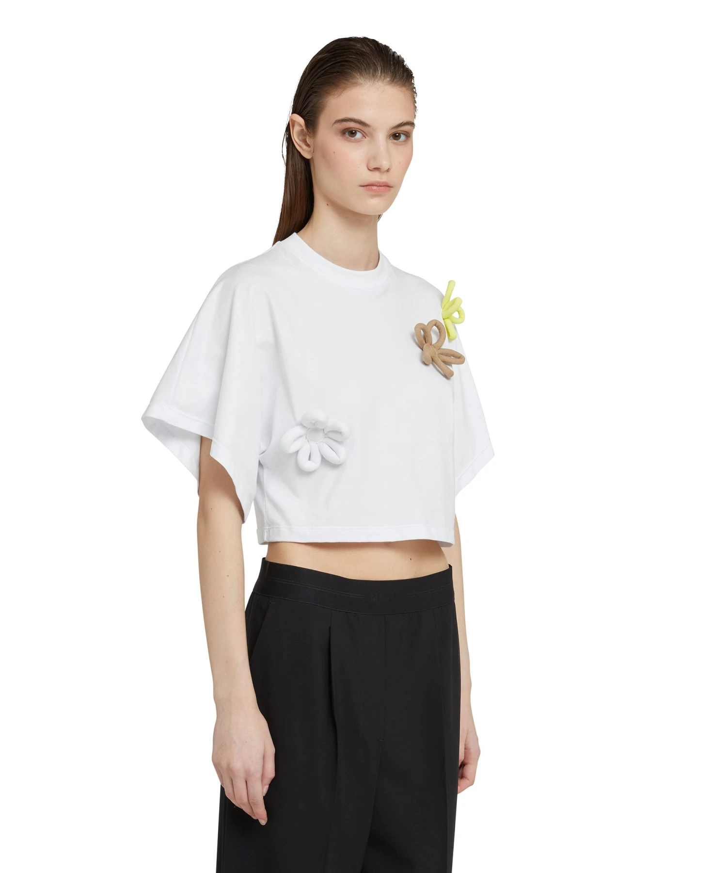 Crewneck crop-top t-shirt with floral applications. Oversize fit.
