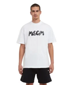 Solid color cotton crewneck t-shirt with contrasting new MSGM brushstroke logo. Short sleeves and ribbed collar. Regular fit.