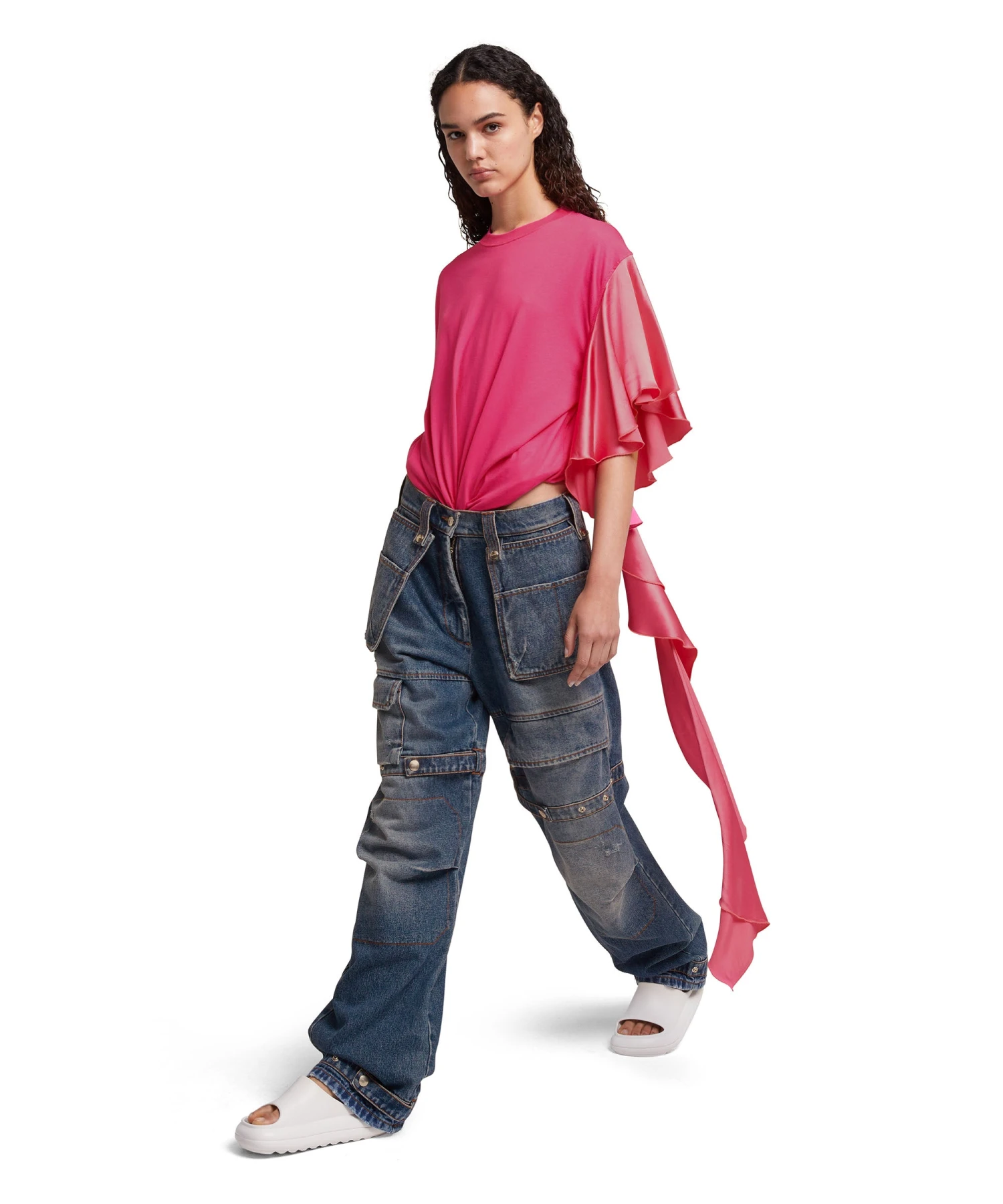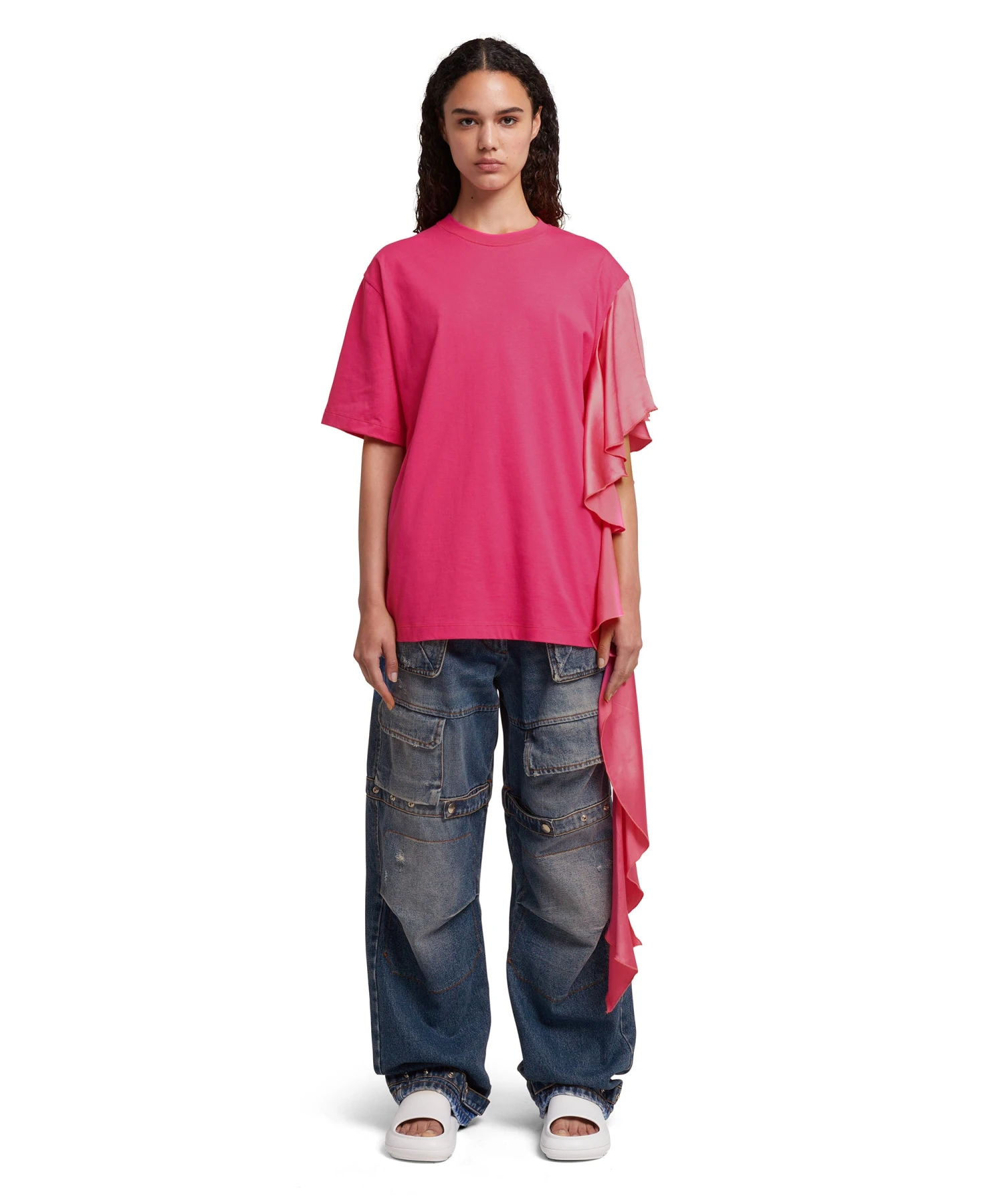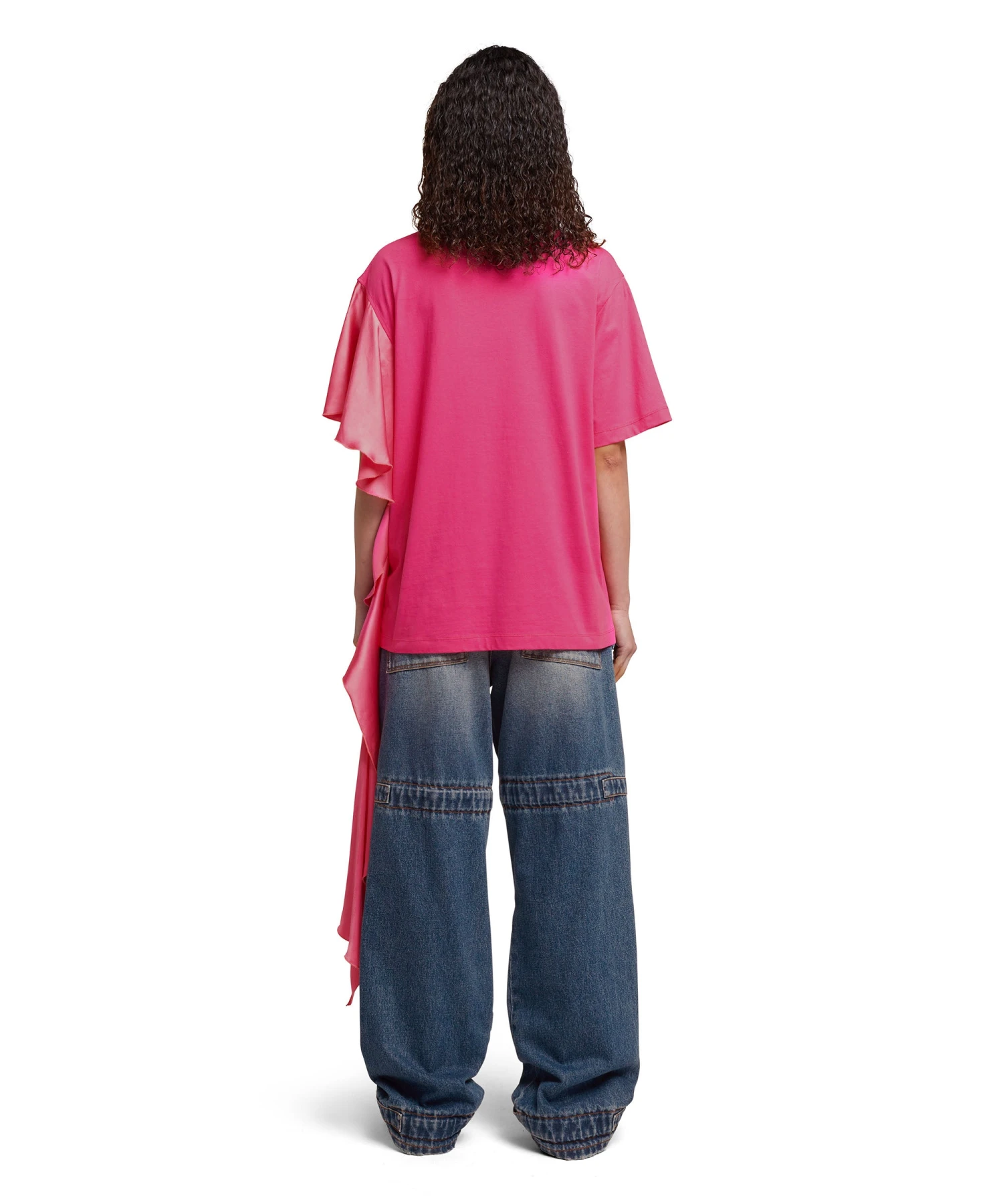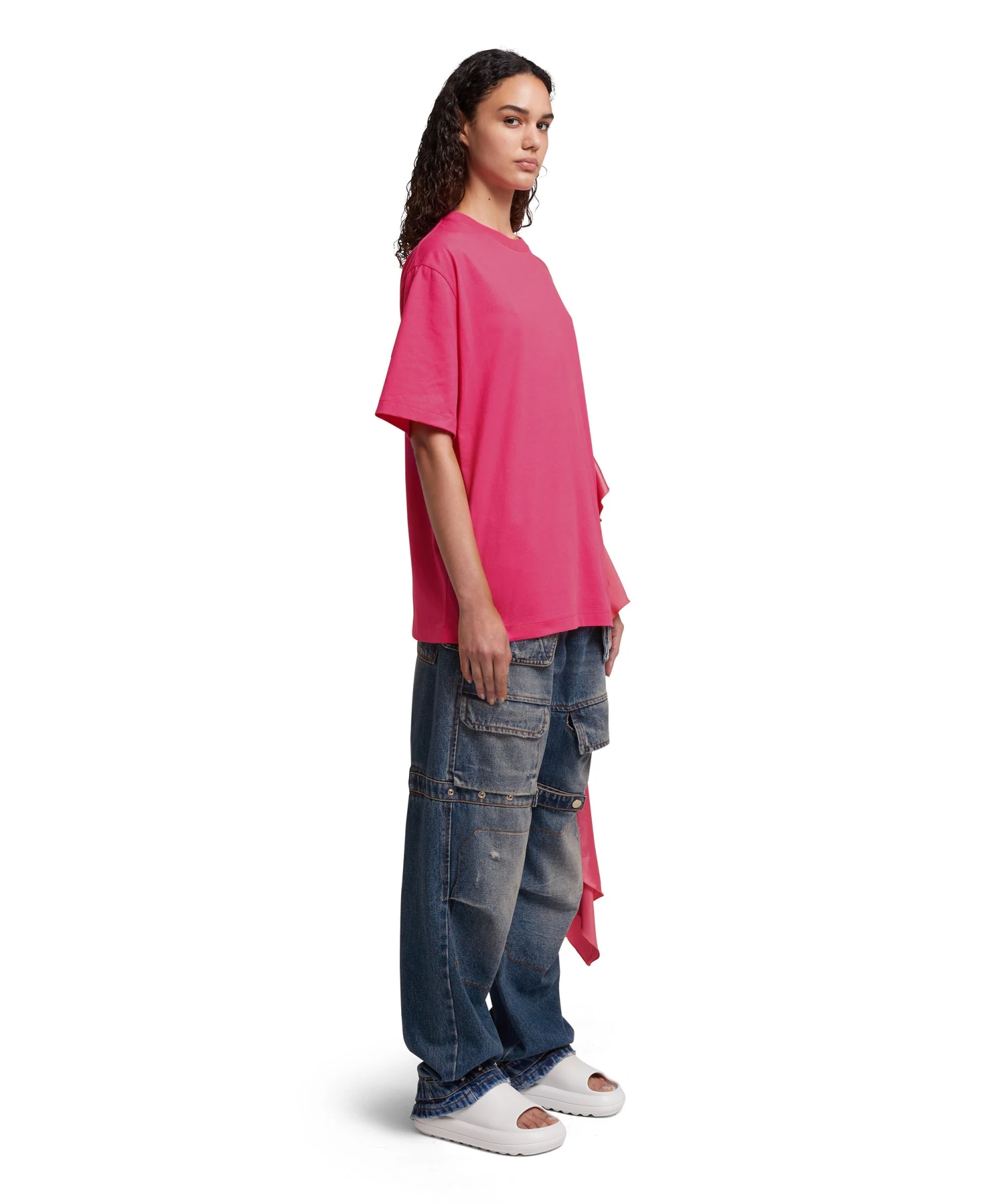 T-shirt with matching satin detail applied on the sleeve and on the side. Oversize fit.