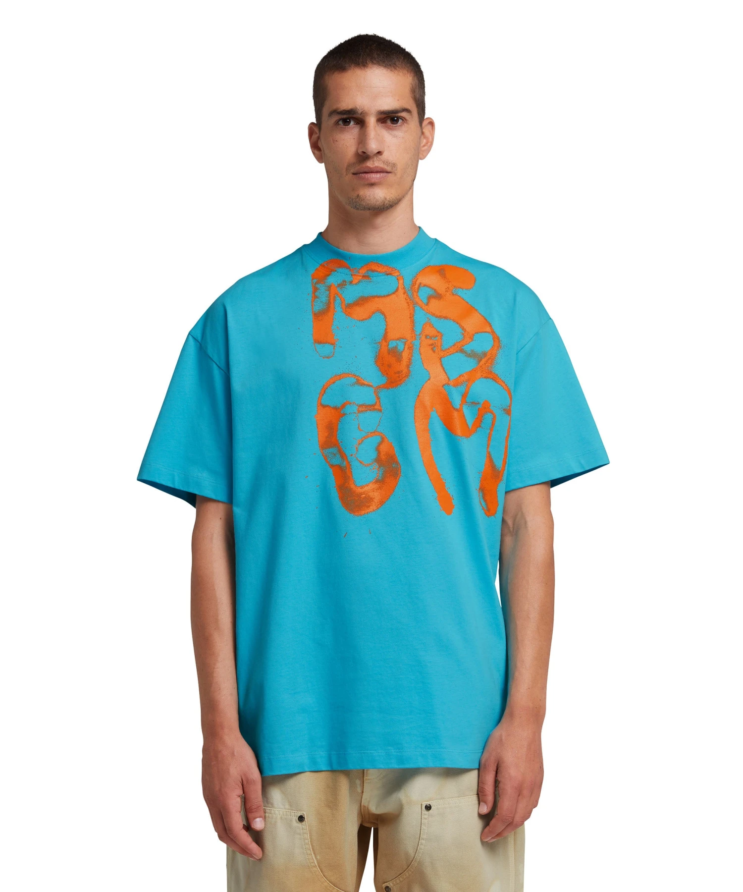 Solid color cotton crewneck t-shirt with contrasting spray effect MSGM logo. Short sleeves and ribbed collar. Regular fit.