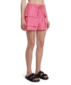 Taffeta cargo shorts. Medium elasticized waist with adjustable external drawstring. Regular fit.