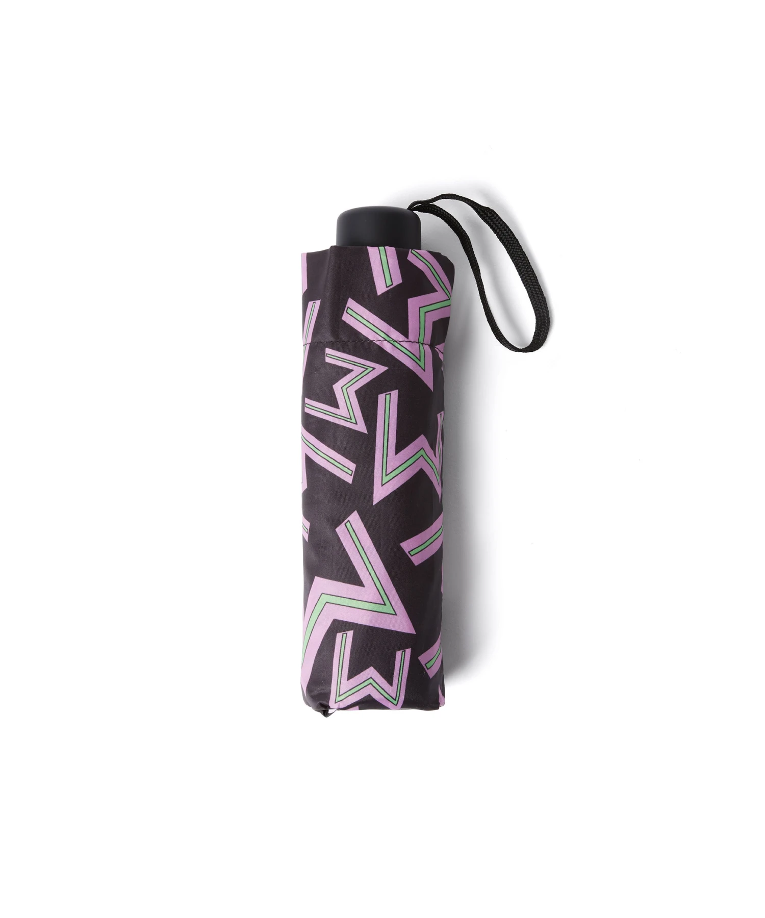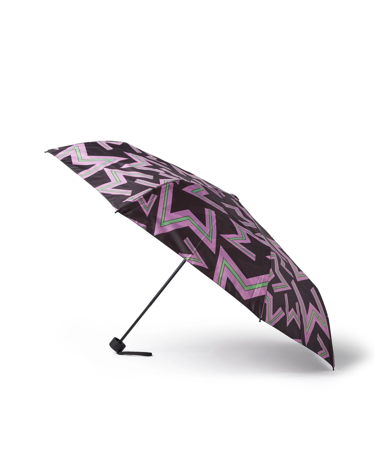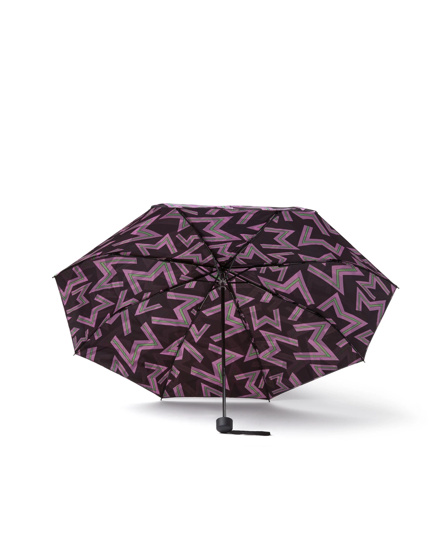 Plain-coloured umbrella with monogram design in contrasting colour.